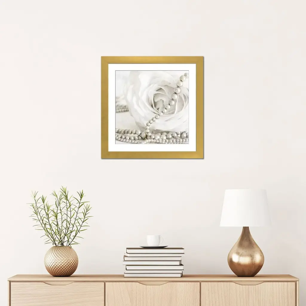 Icanvas "White Rose With Pearls" By Tom Quartermaine - Black - 24x24x1