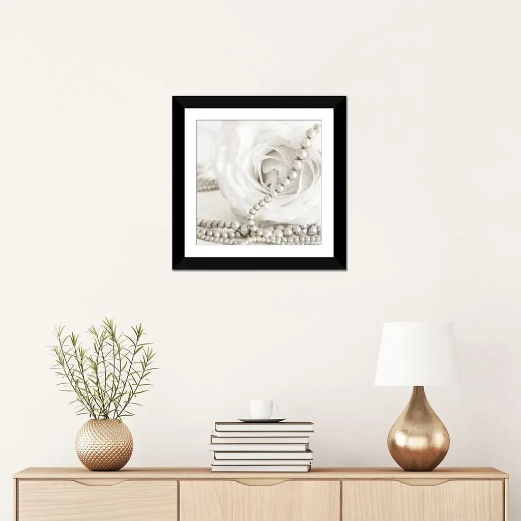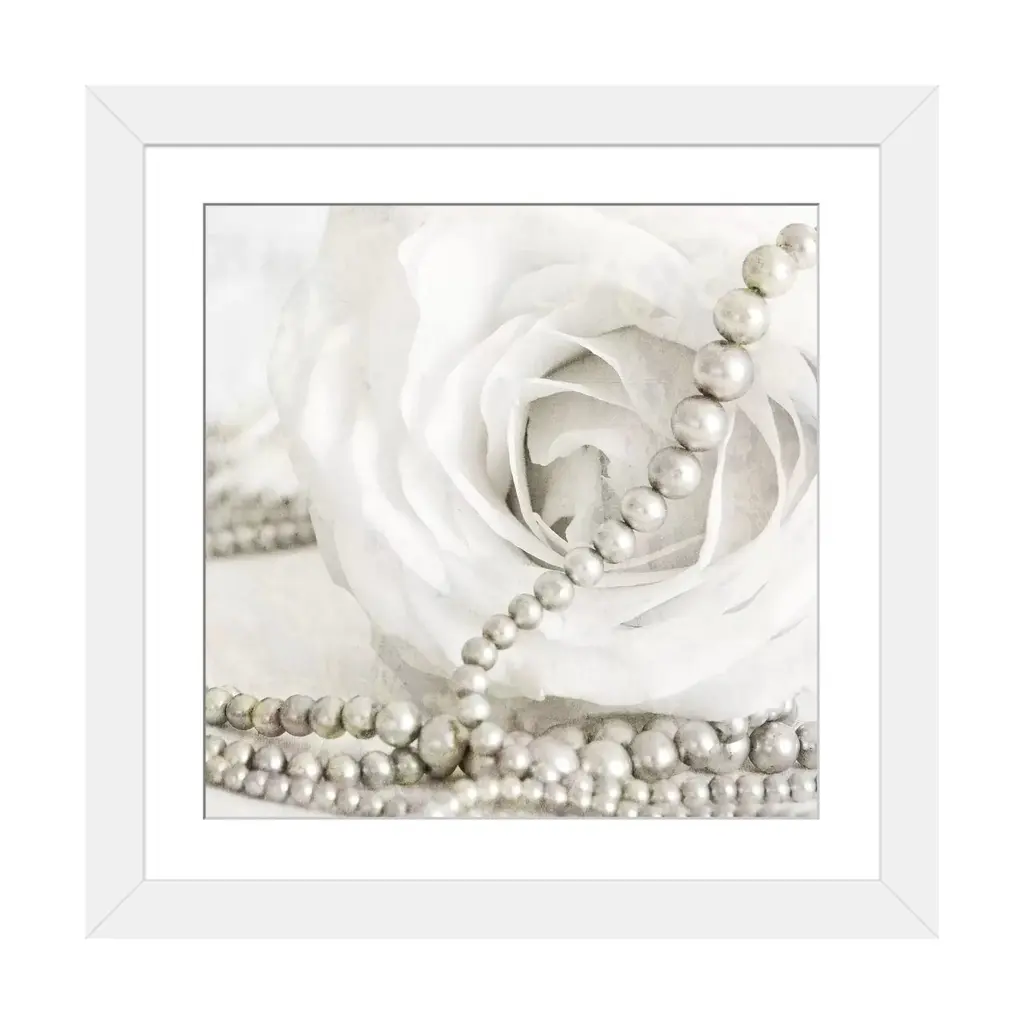 Icanvas "White Rose With Pearls" By Tom Quartermaine - Walnut - 24x24x1