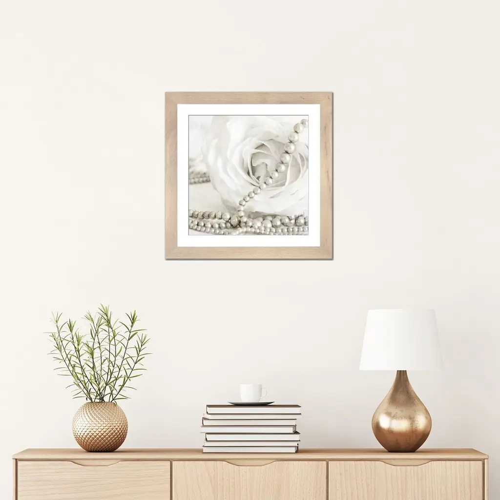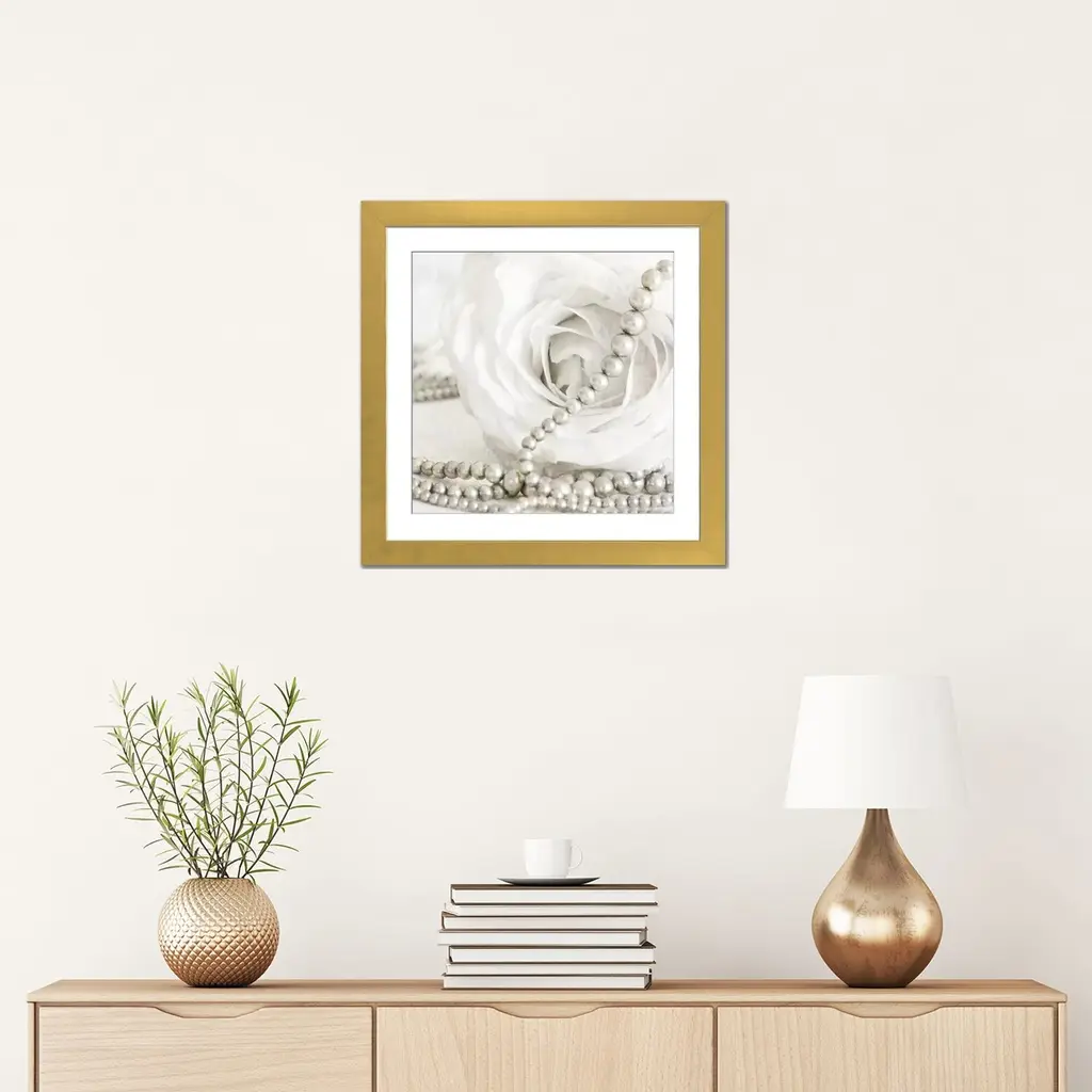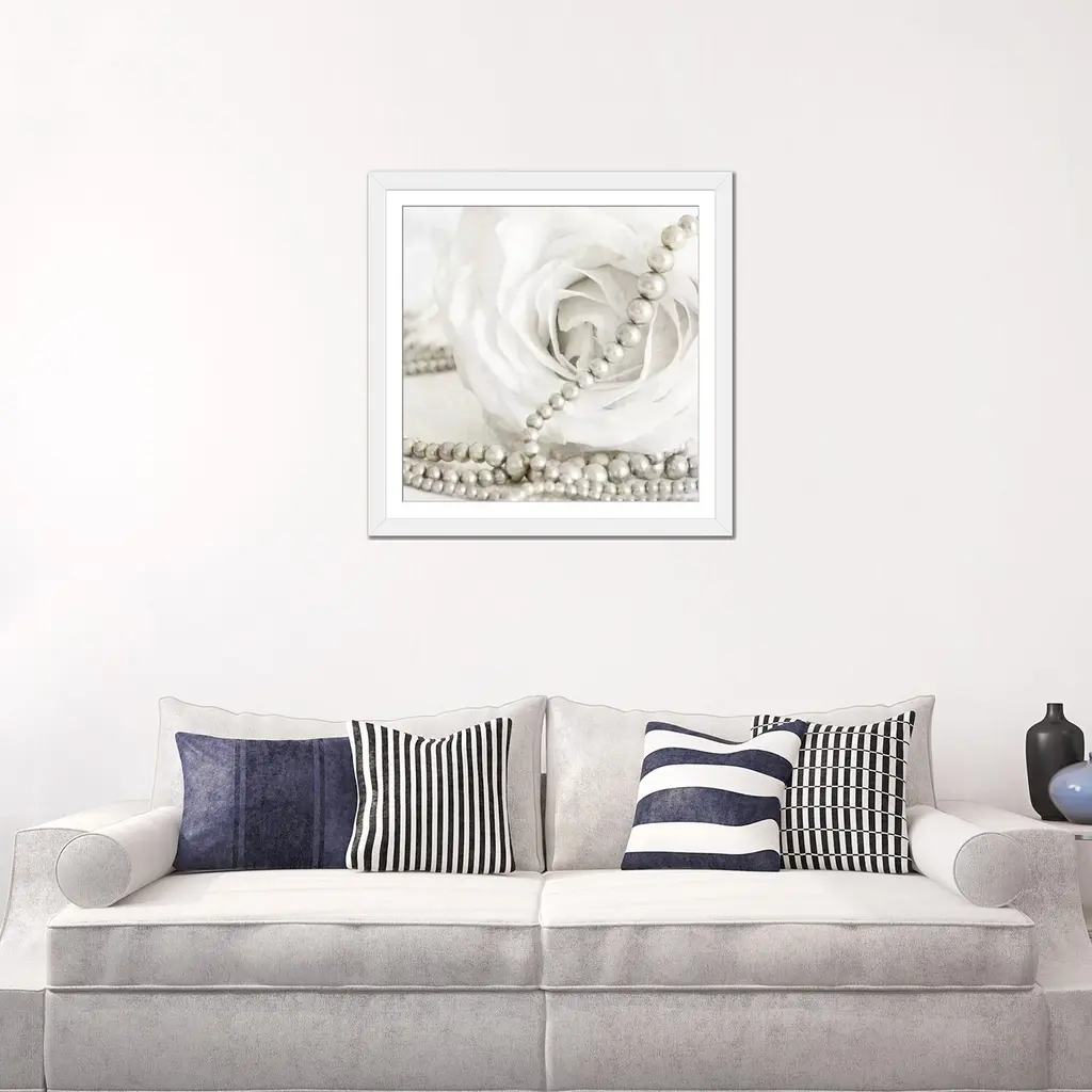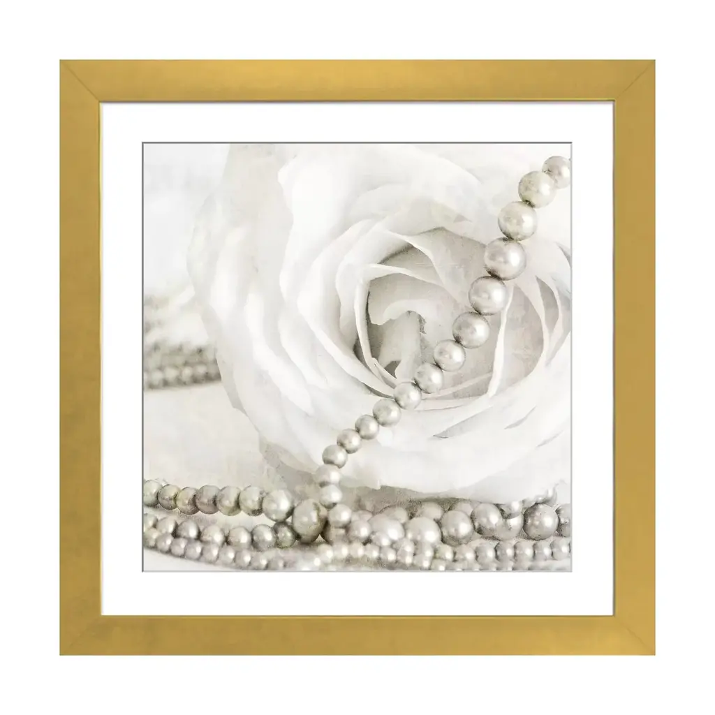 Icanvas "White Rose With Pearls" By Tom Quartermaine - White - 16x16x1