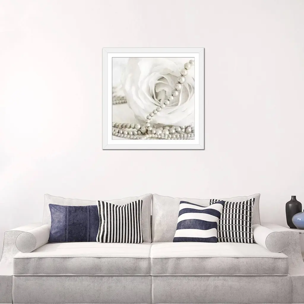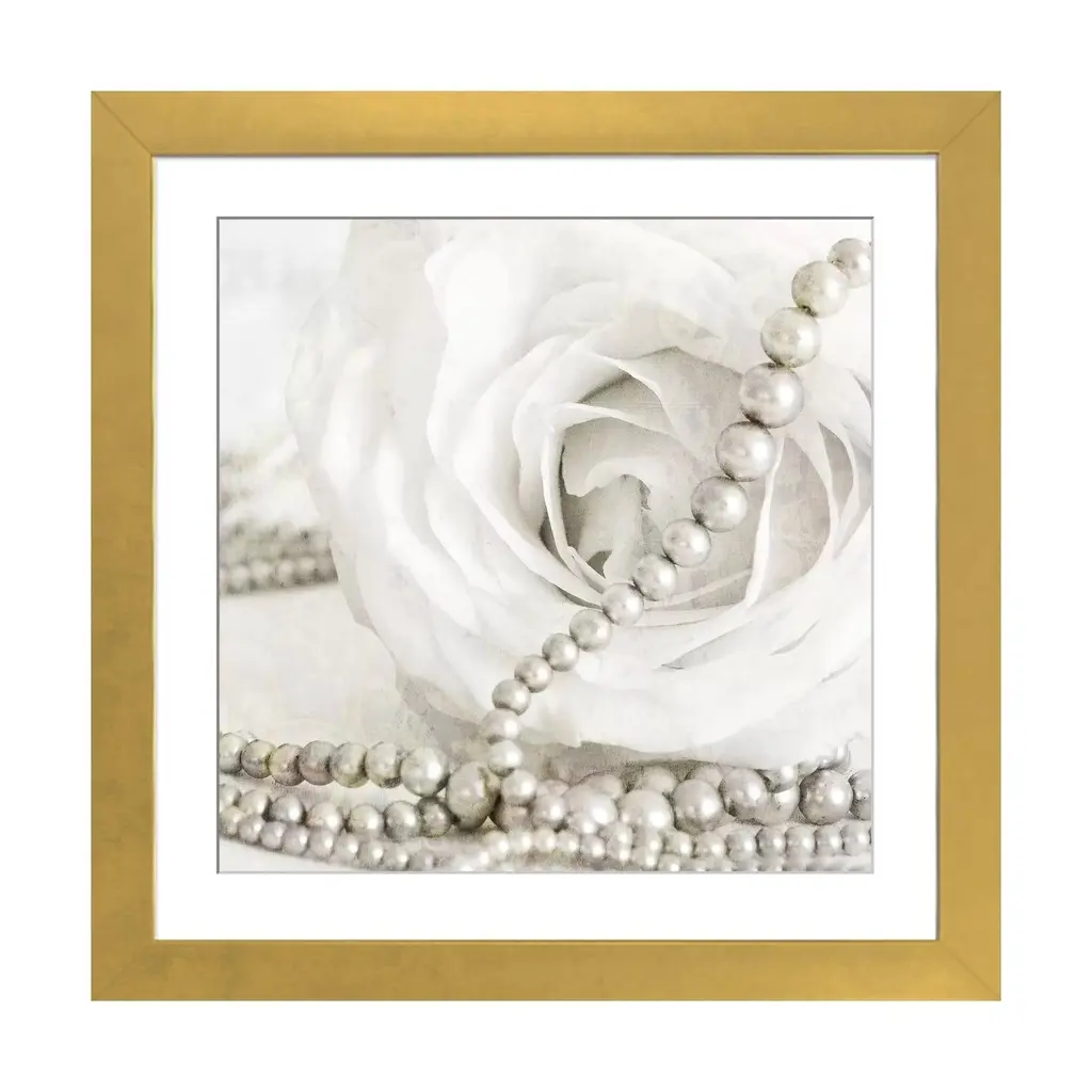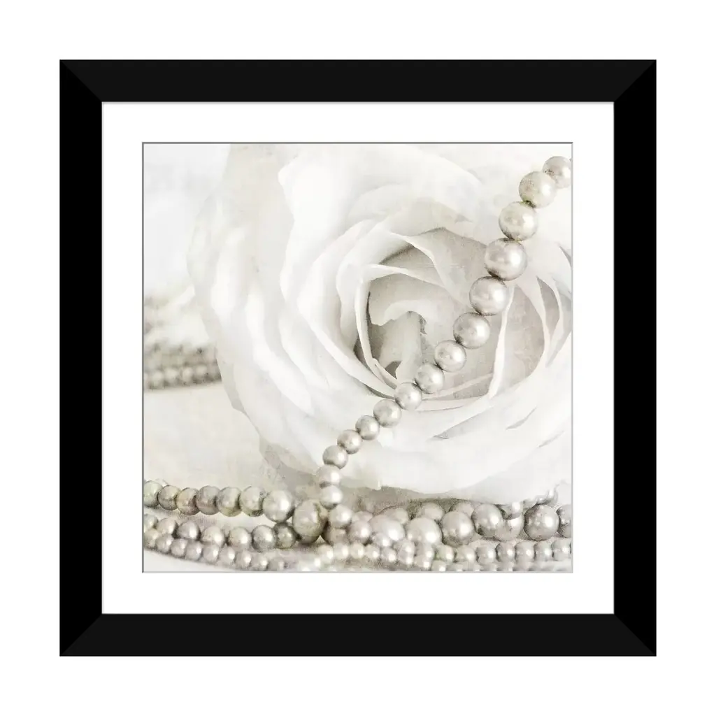 Icanvas "White Rose With Pearls" By Tom Quartermaine - White - 24x24x1