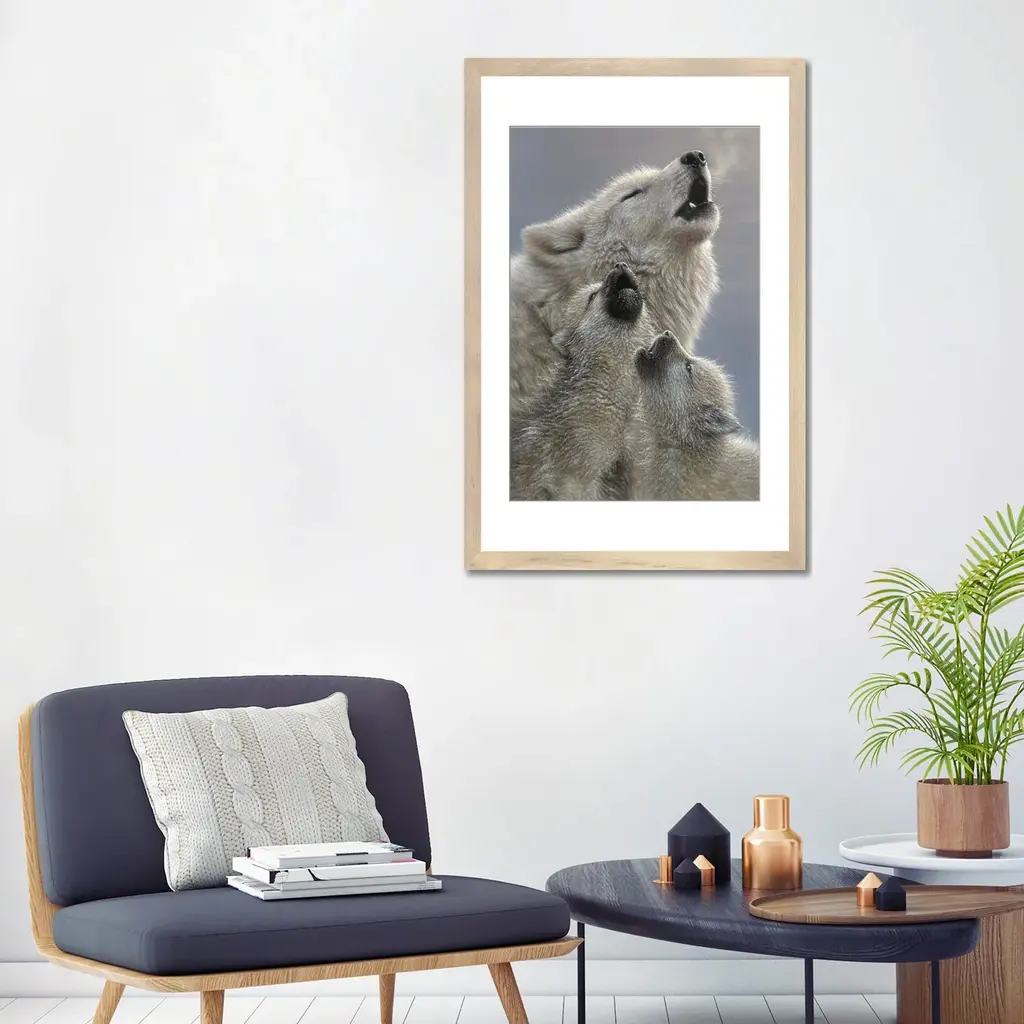 Icanvas "Wolf Singing Lessons" By Collin Bogle - White - 24x16x1