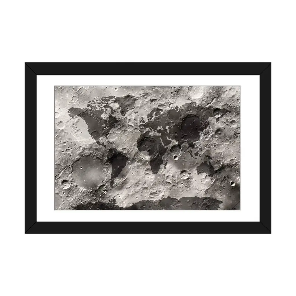 Icanvas "World Map On The Moon's Surface" By Michael Tompsett - Black - 24x32x1