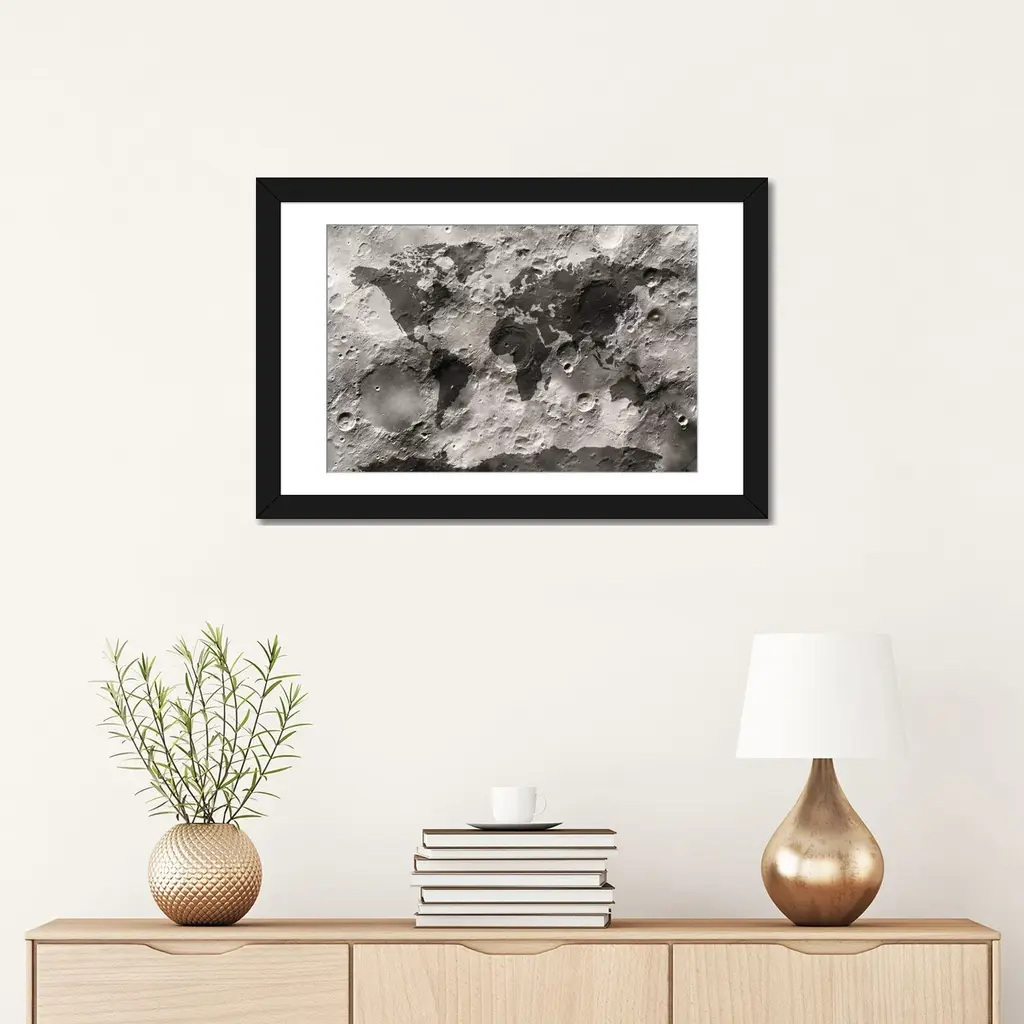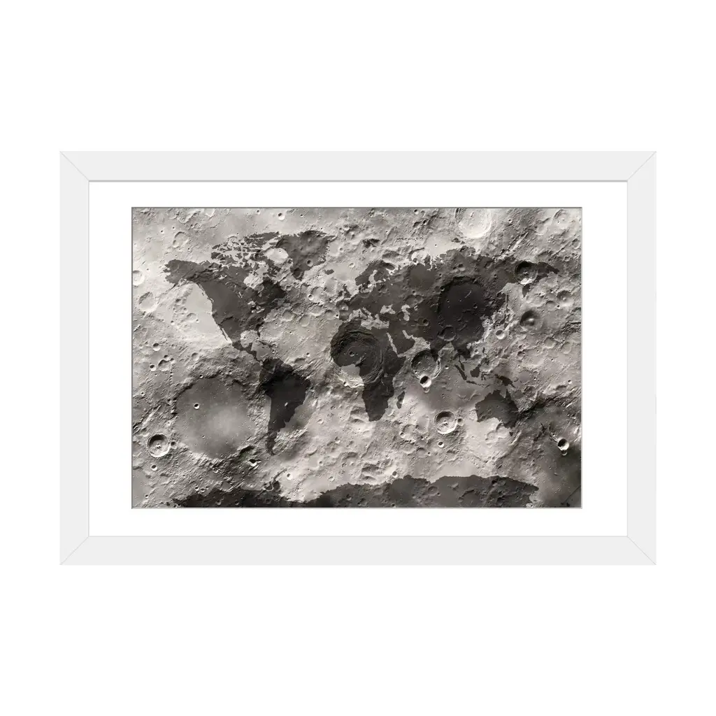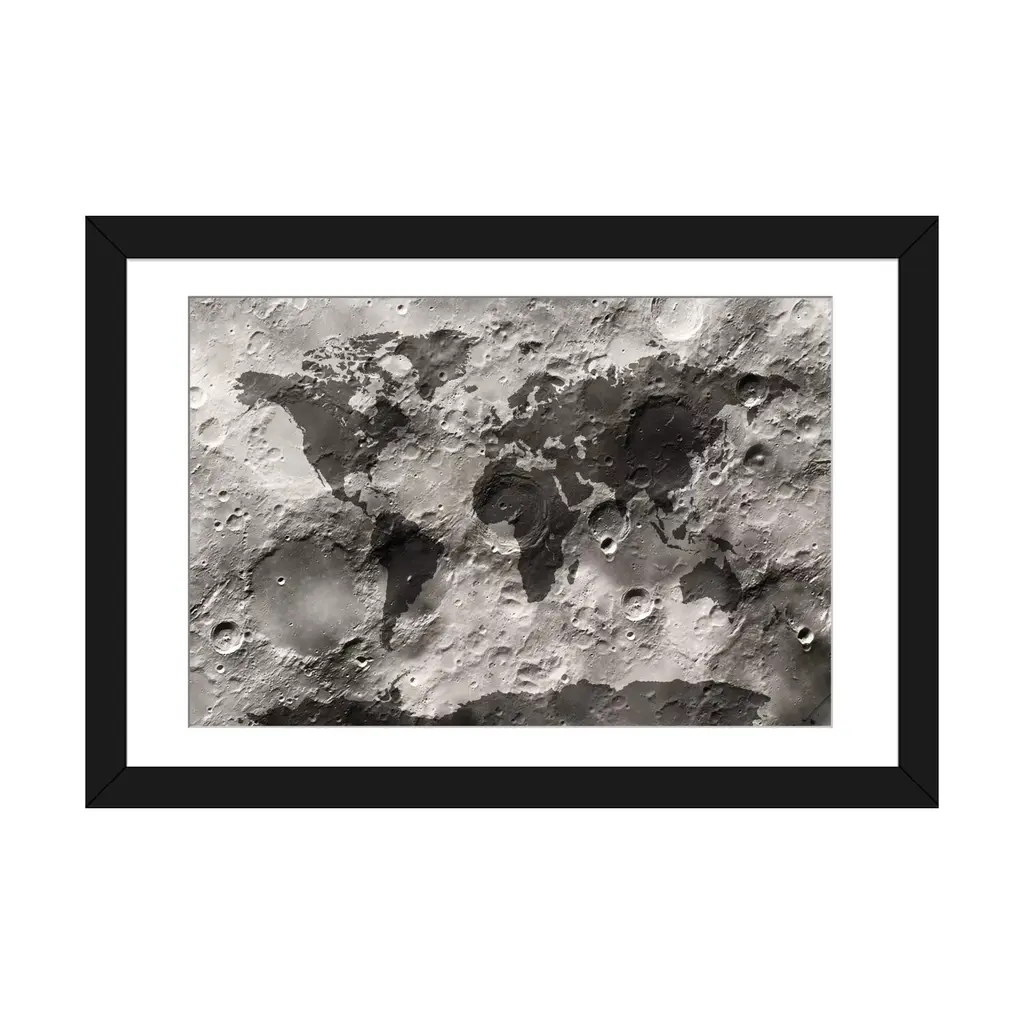 Icanvas "World Map On The Moon's Surface" By Michael Tompsett - Gold - 24x32x1