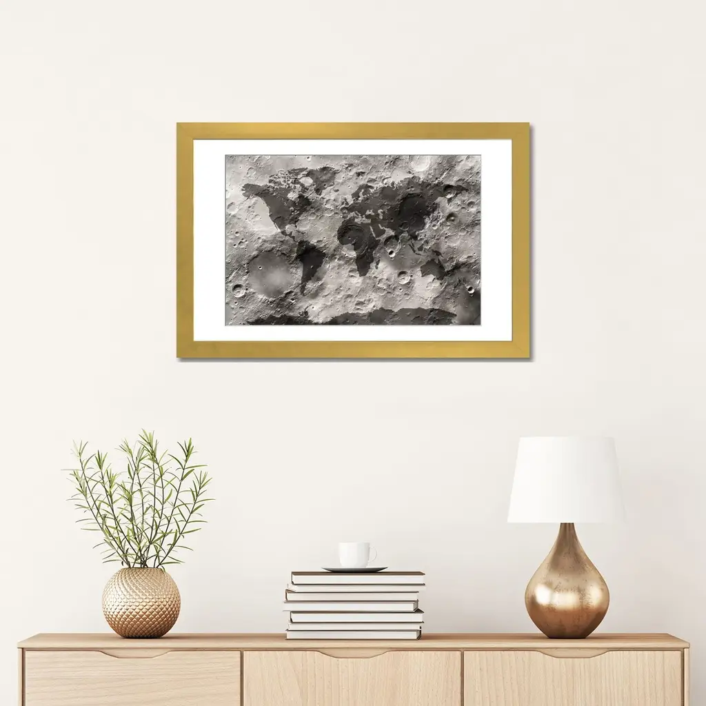 Icanvas "World Map On The Moon's Surface" By Michael Tompsett - Natural - 24x32x1