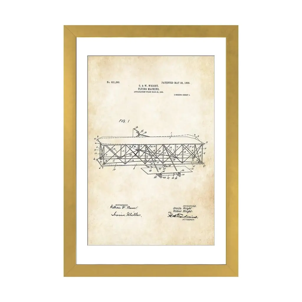 Icanvas "Wright Brothers Airplane" By Patent77 - Walnut - 24x16x1