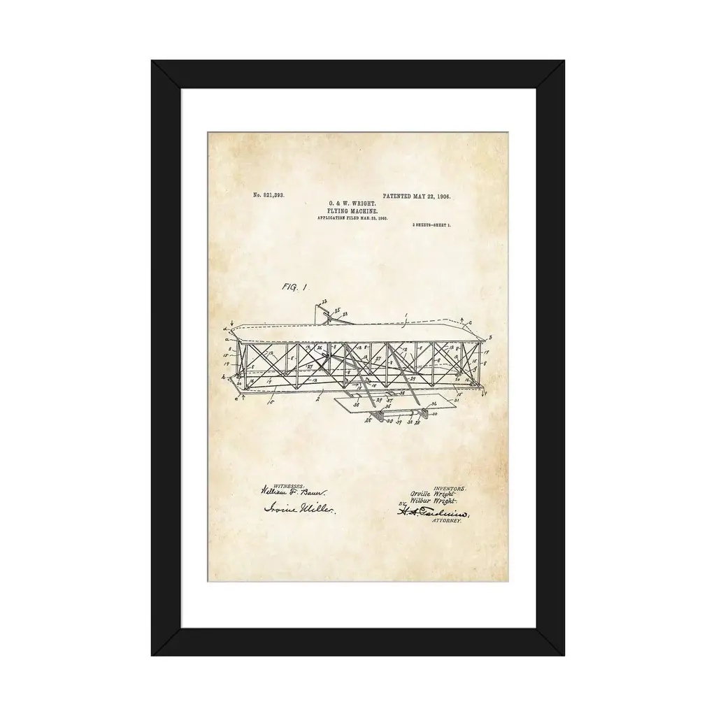 Icanvas "Wright Brothers Airplane" By Patent77 - Walnut - 32x24x1