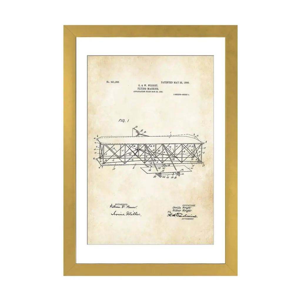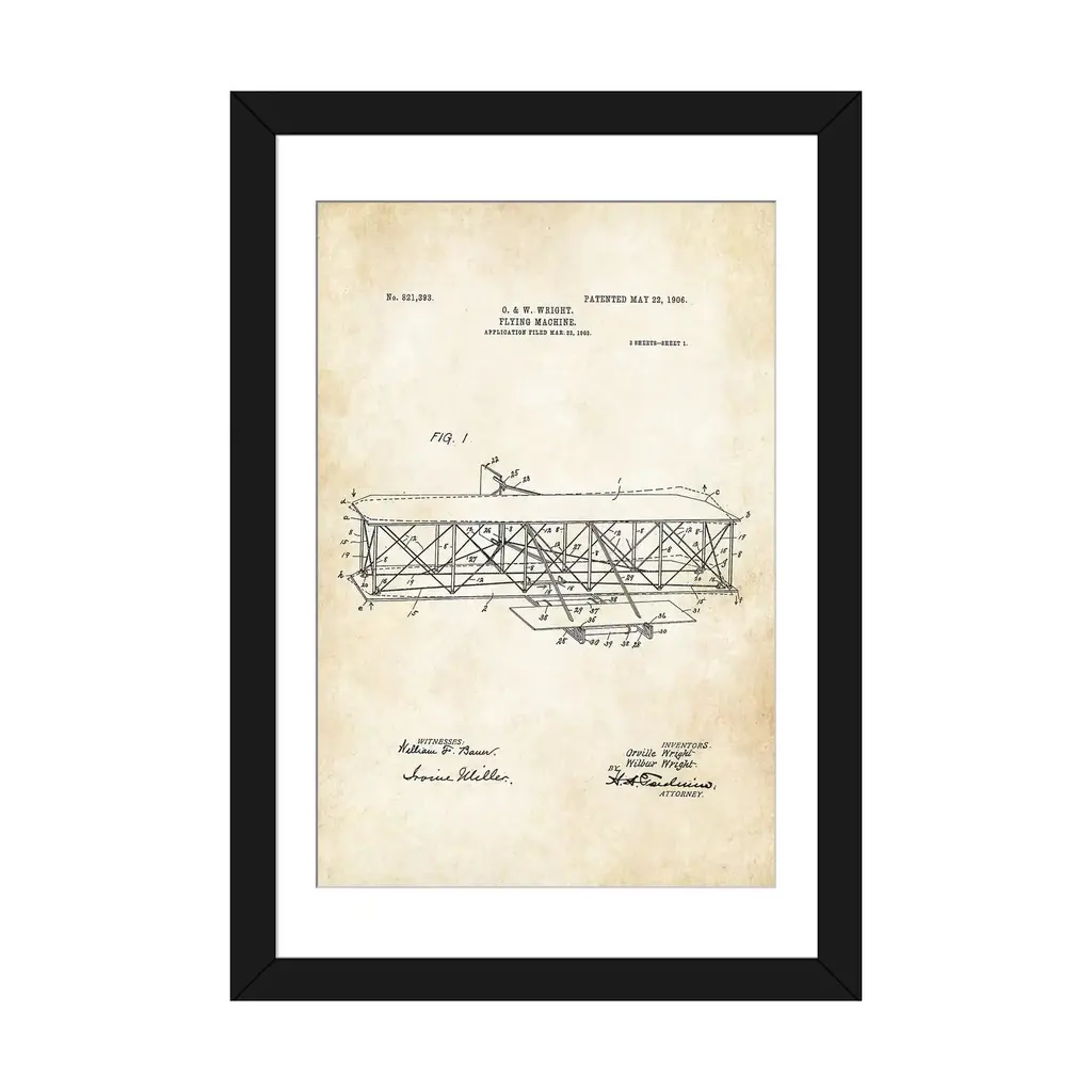 Icanvas "Wright Brothers Airplane" By Patent77 - White - 24x16x1