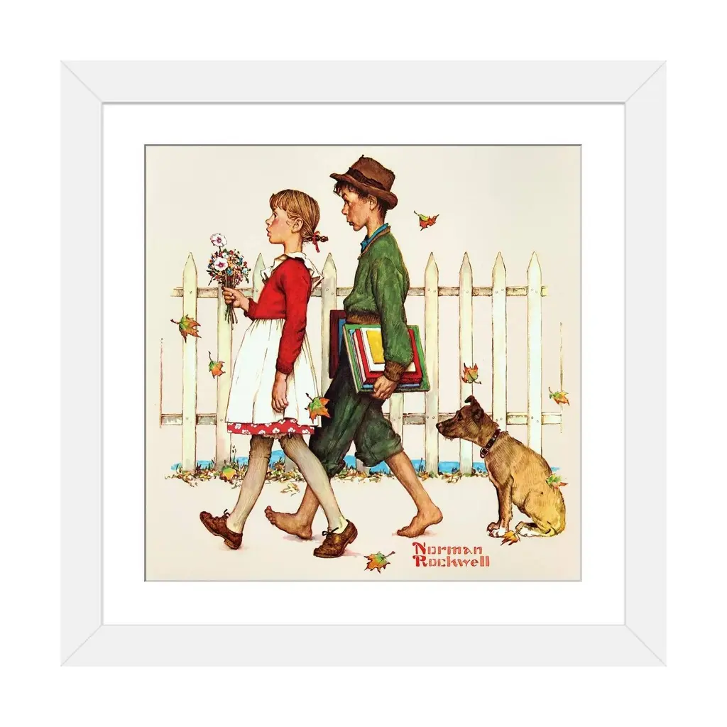 Icanvas "Young Love- Walking To School" By Norman Rockwell - White - 24x24x1