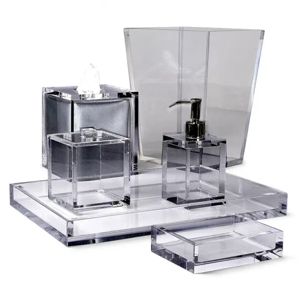 A favorite of Philippe Starck and Kartell furnishings, Mike + Ally has mastered the use of quality Lucite in bath accessories. Hand cut, assembled and polished, the 3/8" thick clear Lucite coordinates with an array of bathroom décors. Established 30 years ago in New York, Mike & Ally is known worldwide for their elegant, handmade enamel and lucite bath accessories. All items custom made to order; please allow 1-2 weeks for delivery. Please make your selection carefully; orders cannot be cancelled once submitted and items are not returnable.