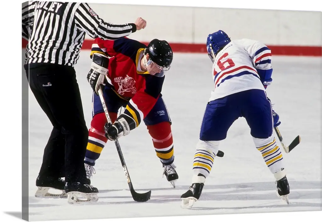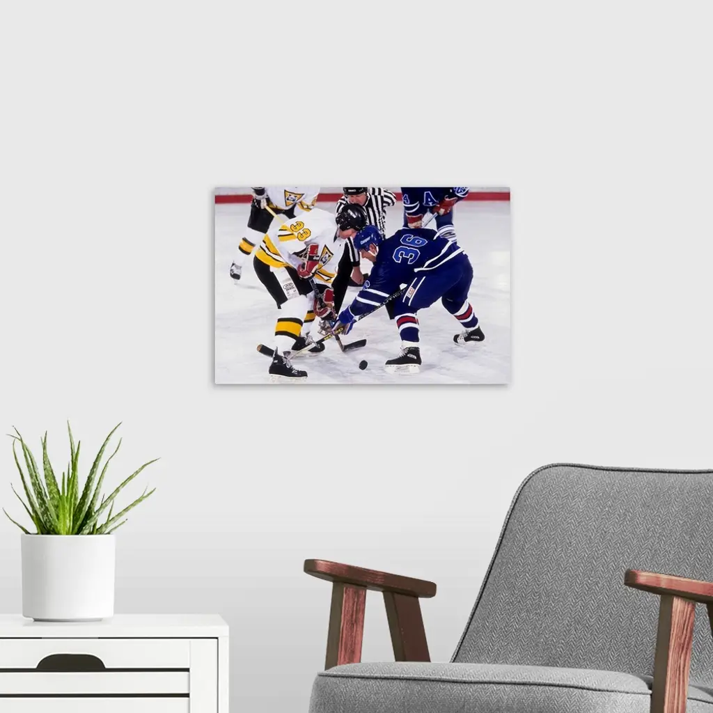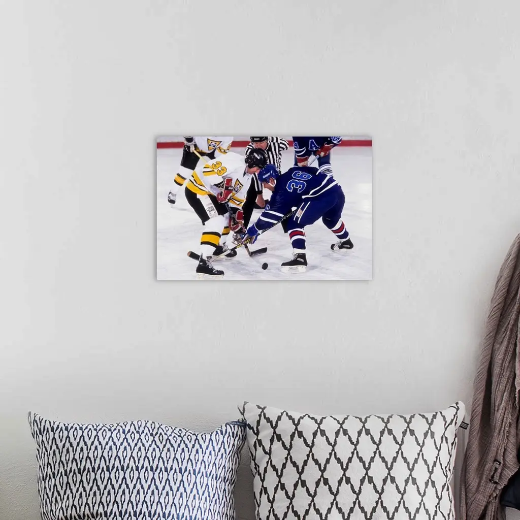 Ice hockey face off wall art for home and office decor. Discover canvas art prints, photos, mural, big canvas art and framed wall art in GreatBigCanvas.com's varied collections.