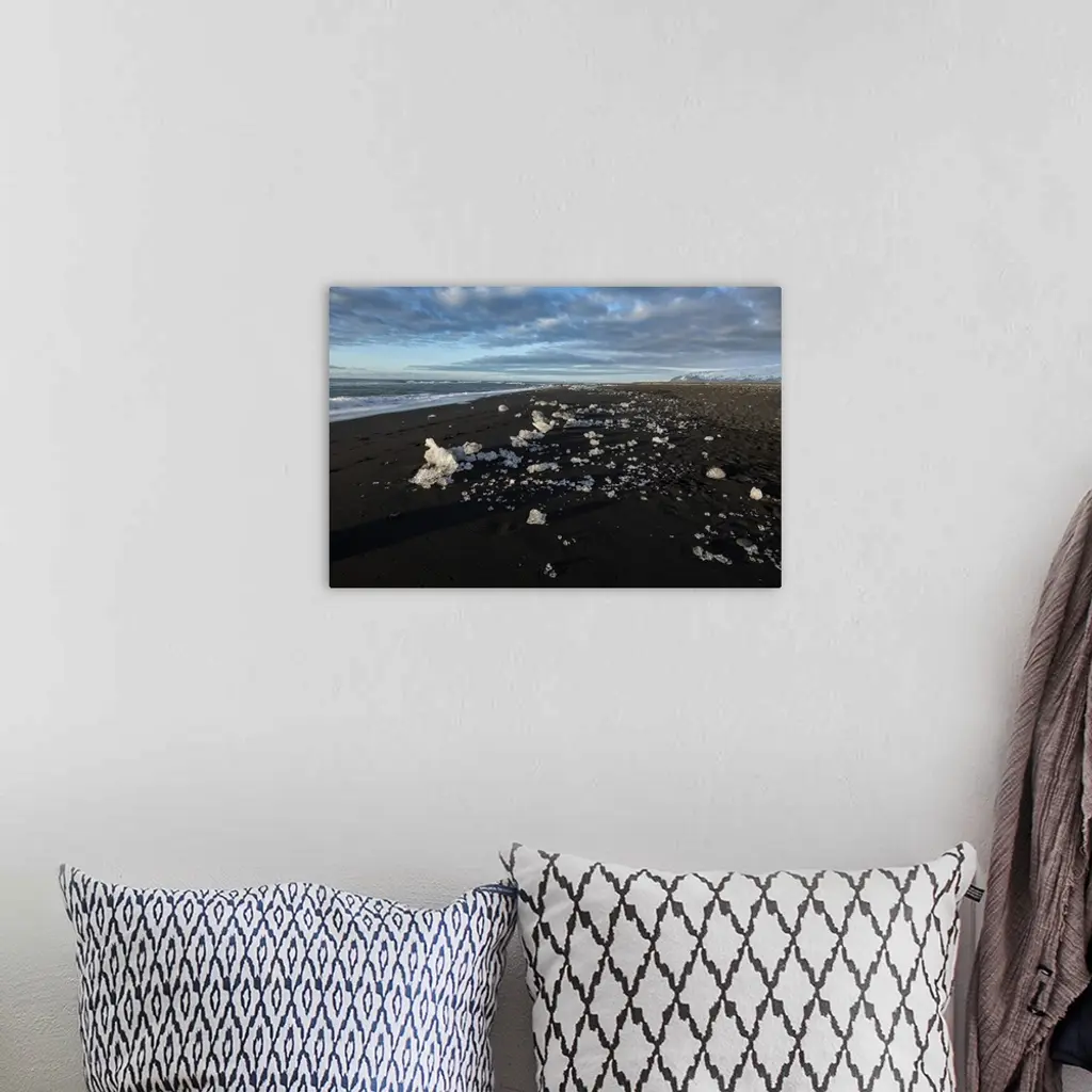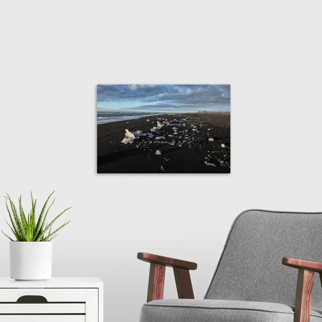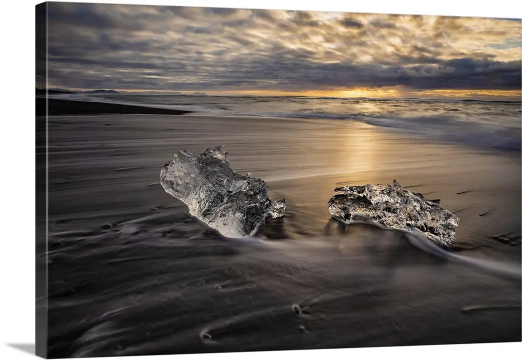 Small icebergs on the beach by Jokulsarlon lagoon, Iceland.