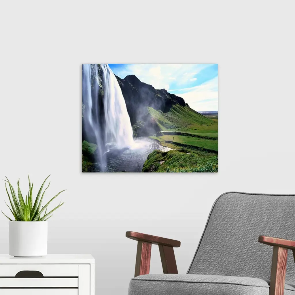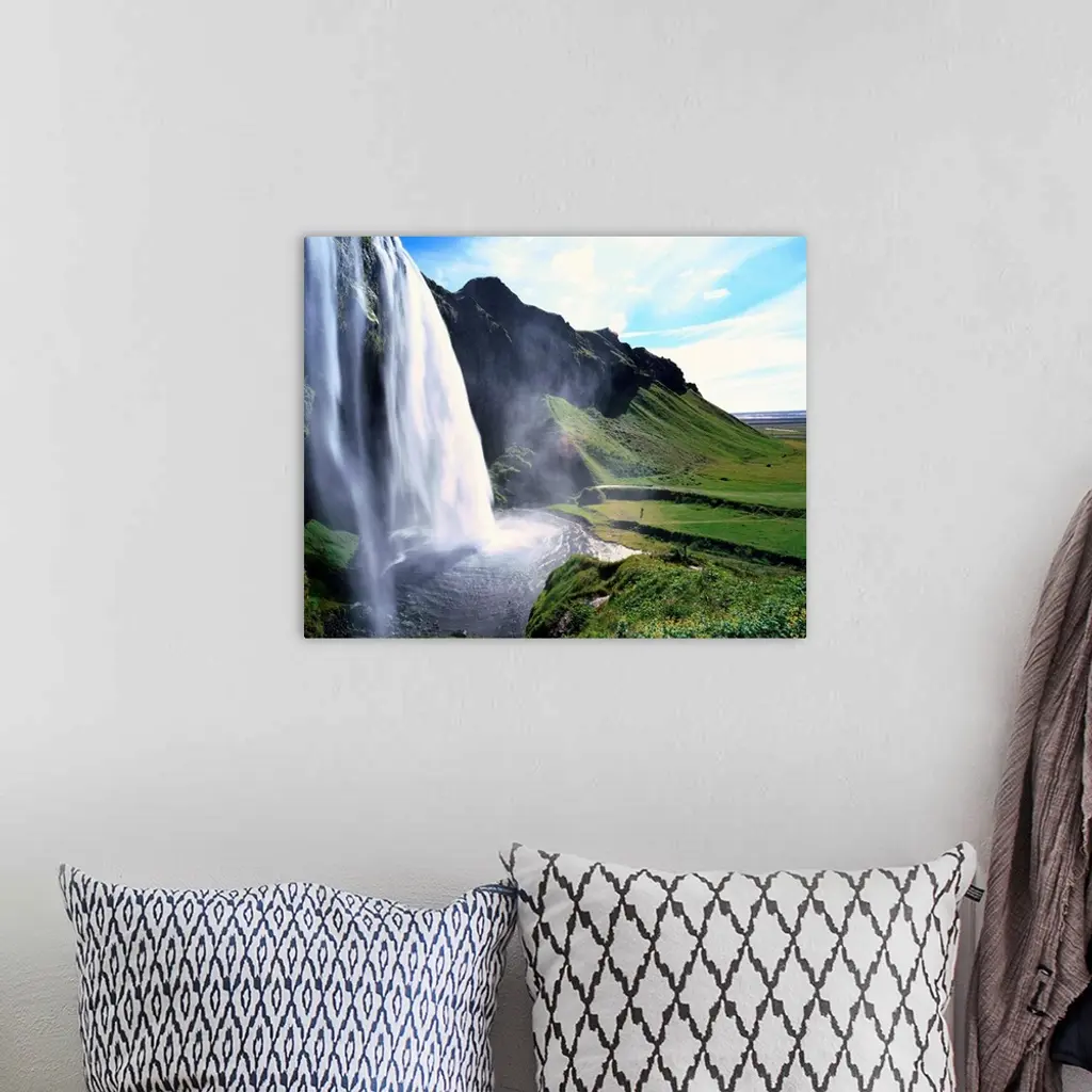 Iceland, South Coast, Seljalandsfoss waterfall wall art for home and office decor. Discover canvas art prints, photos, mural, big canvas art and framed wall art in GreatBigCanvas.com's varied collections.
