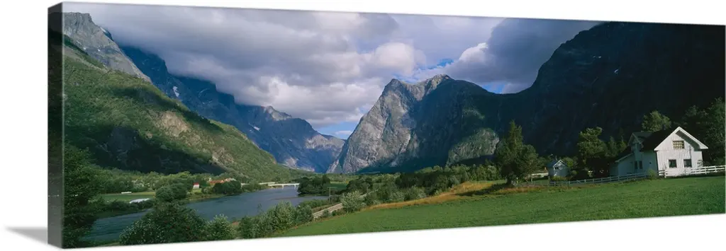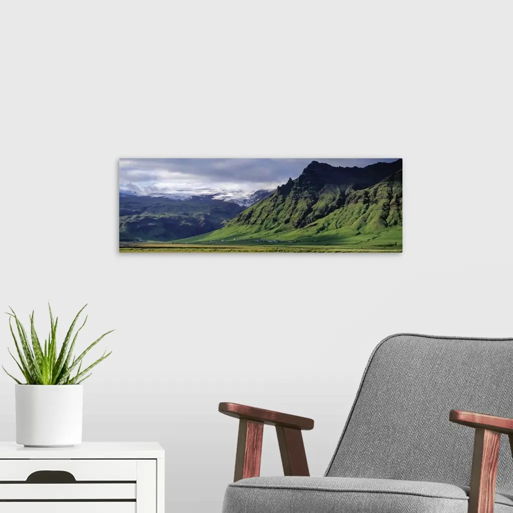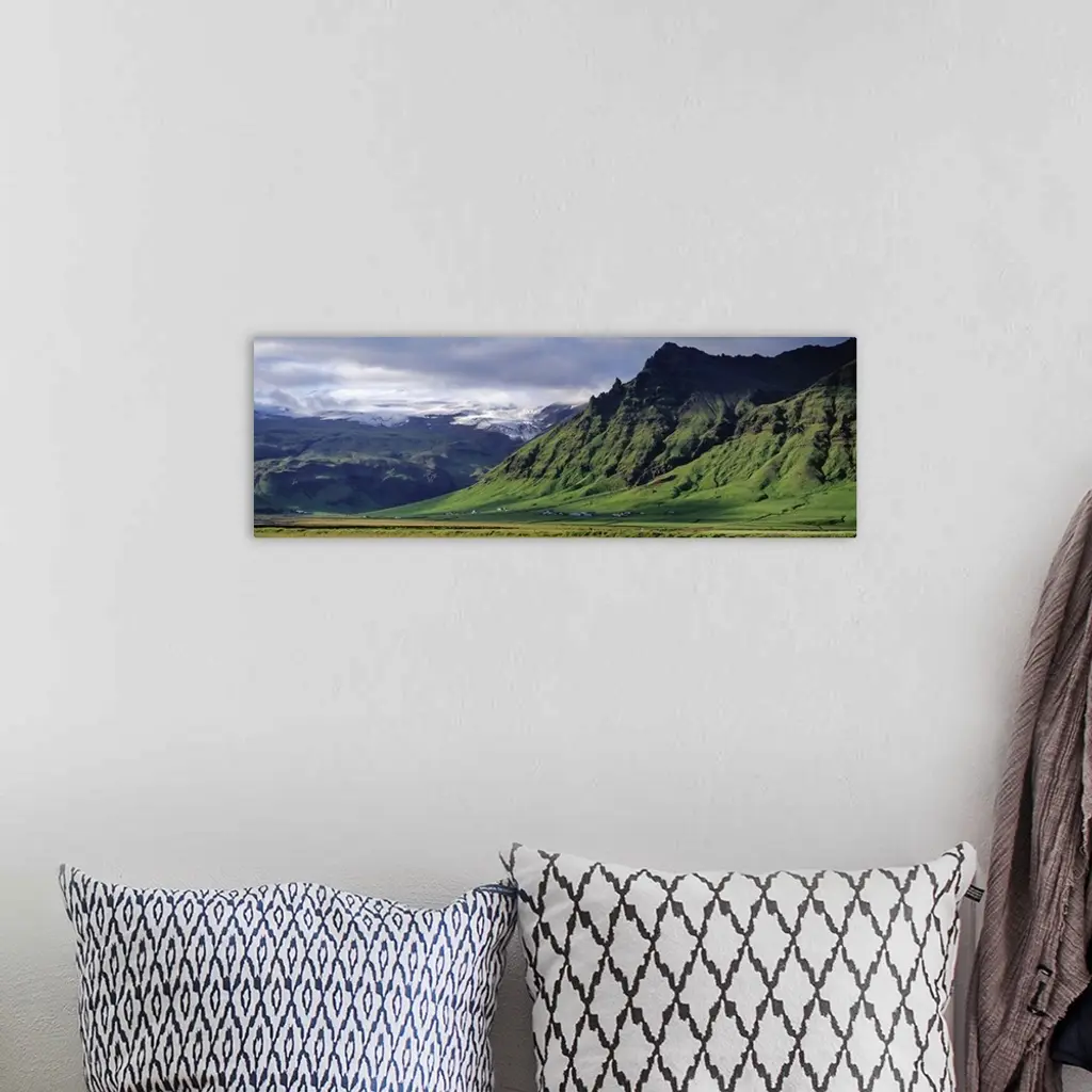 Iceland, South Coast, Sheer Basalt Cliffs, View of farm and cliff in the south coast wall art for home and office decor. Discover canvas art prints, photos, mural, big canvas art and framed wall art in GreatBigCanvas.com's varied collections.