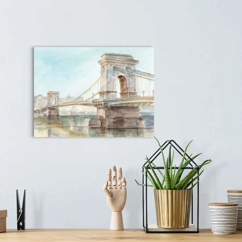 Iconic Watercolor Bridge I wall art for home and office decor. Discover canvas art prints, photos, mural, big canvas art and framed wall art in GreatBigCanvas.com's varied collections.