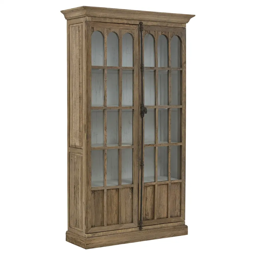 Idalia French Country Weathered Brown Wood Glass Display Case