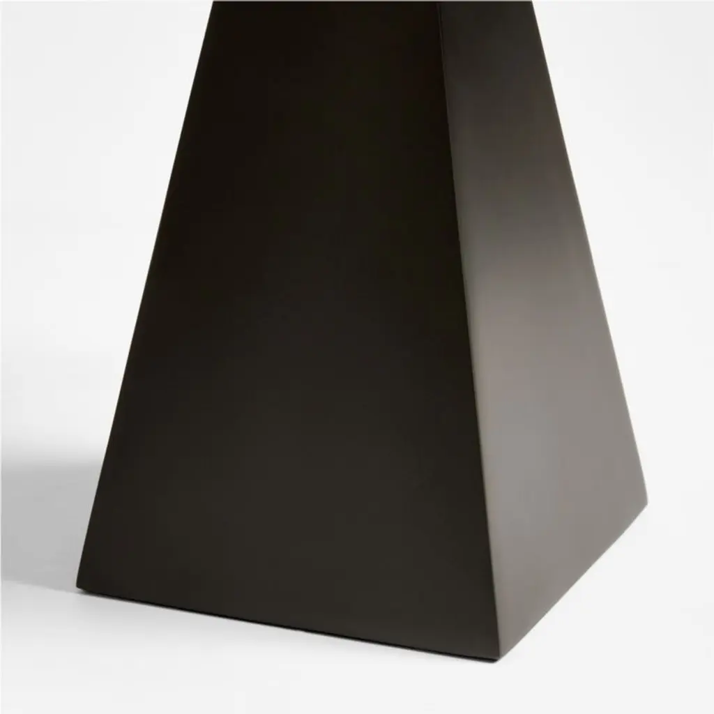 Slabs of honed alabaster arranged in a pinwheel formation top our Idealist lamp with a stunning shade. The translucent stone diffuses light softly, making this petite table lamp ideal for a nightstand and bedtime reading. Finished in dark pewter, the tapered steel base provides crisp counterpoint to the organic beauty of the shade.
