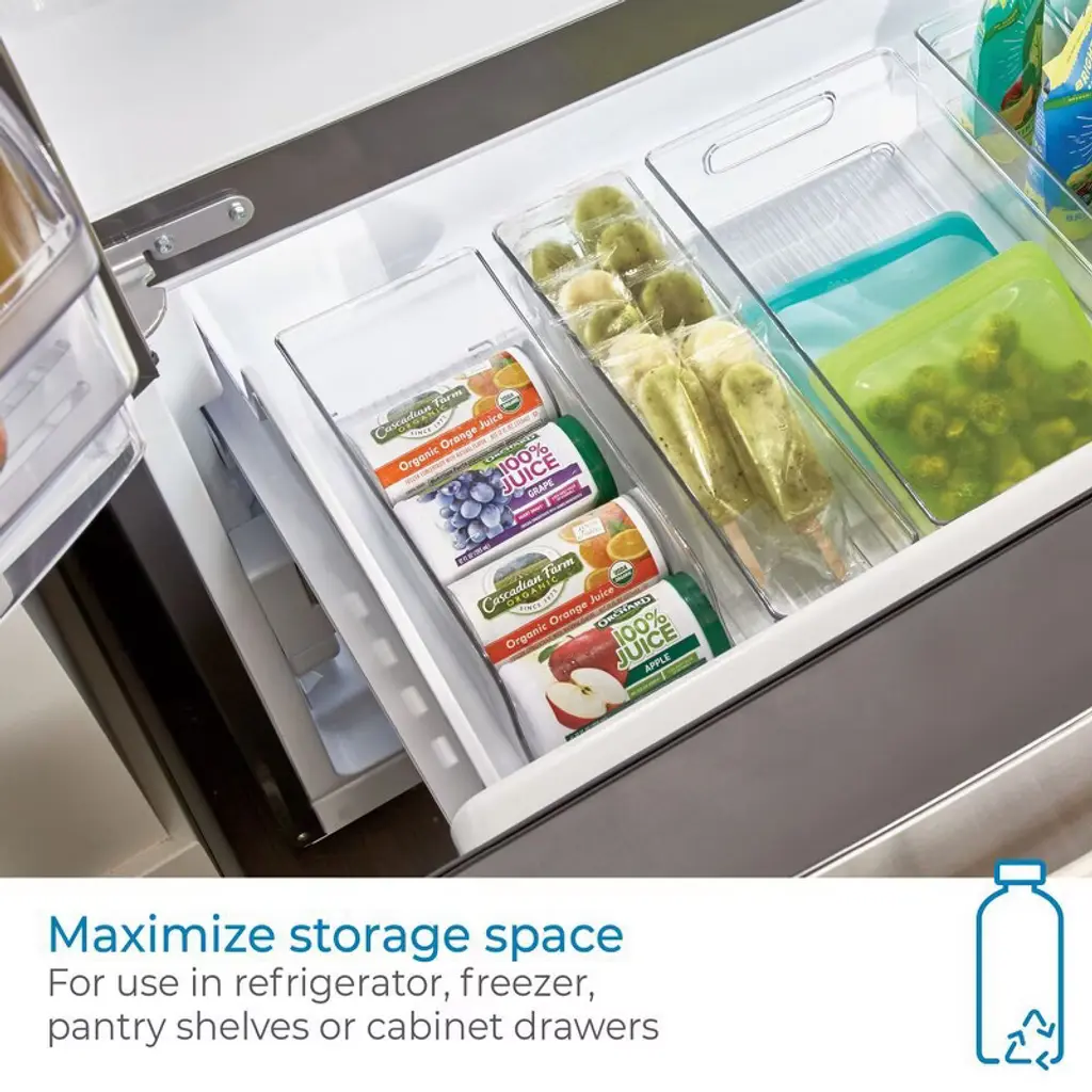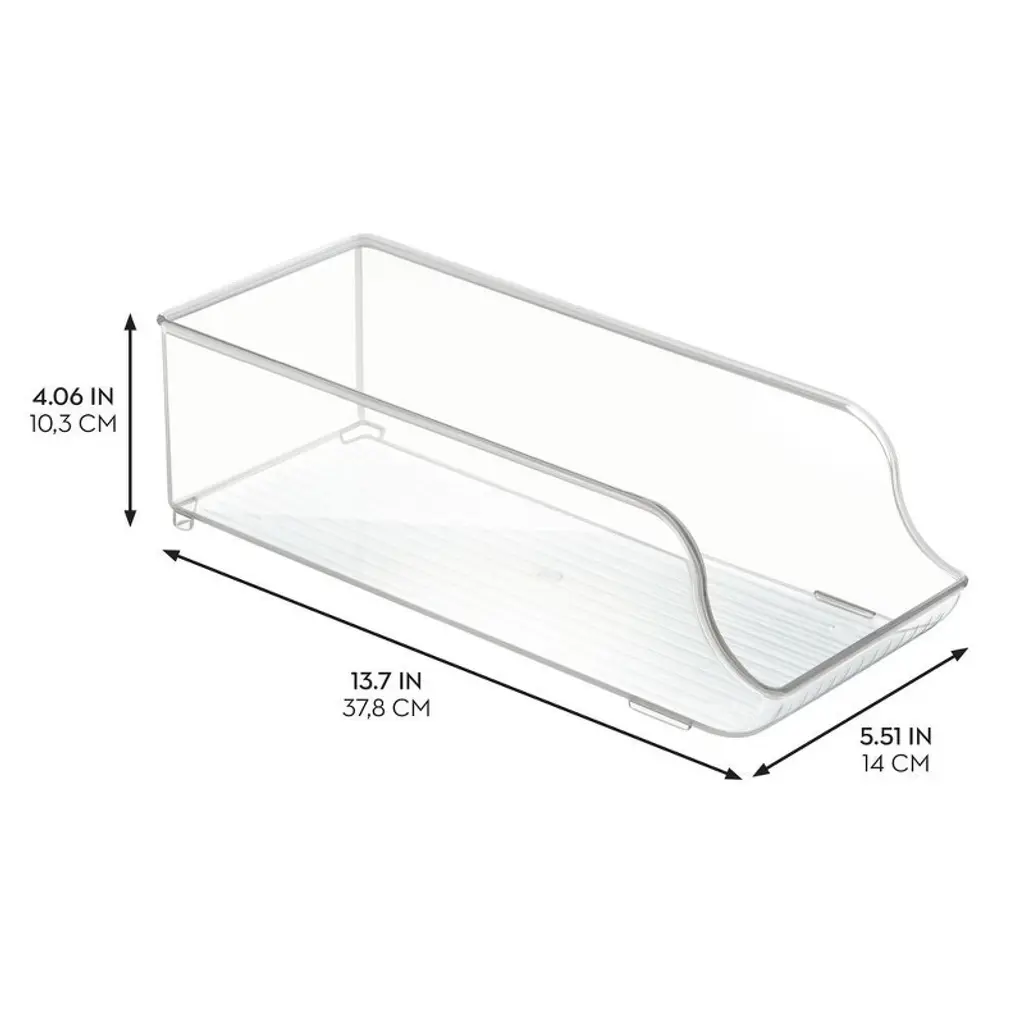 A more orderly fridge starts by designating a spot for beverages, and the iDesign Can Dispenser Set achieves just that. This dispenser holds up to nine standard-sized beverage cans, making it easy to grab your favorite drink. The sloped design allows cans to roll gently to the front for optimal visibility, and the raised front edge and side walls ensure nothing rolls out of place. This organizer also corrals cans of soup and pet food in the pantry or cabinet for smart storage.