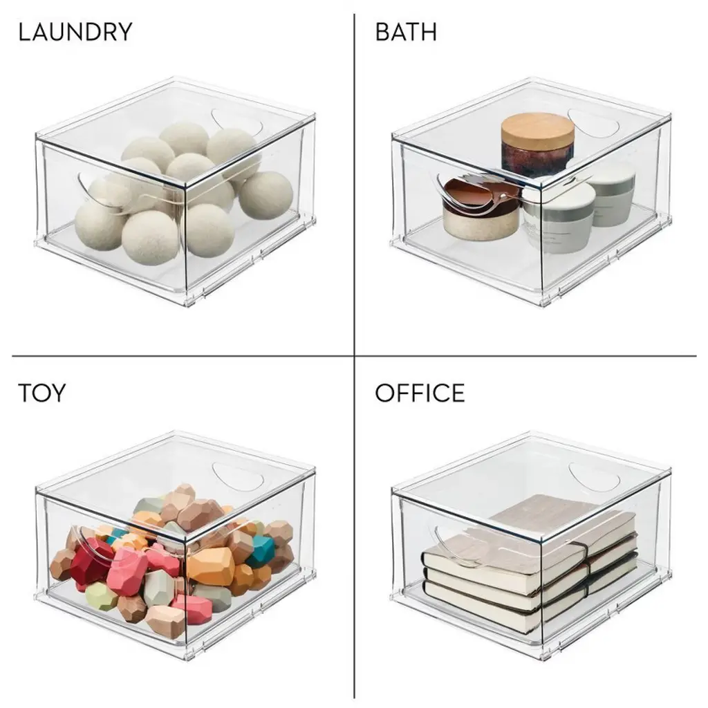 The iDesign Stackable Storage Drawer is the perfect way to reclaim your kitchen space. This easy-sliding drawer offers easy accessibility and visibility of your belongings and eliminates rummaging to find what you need. Drawers stack attractively and securely, making the most of shelf space inside refrigerators, pantries, or cabinets.
