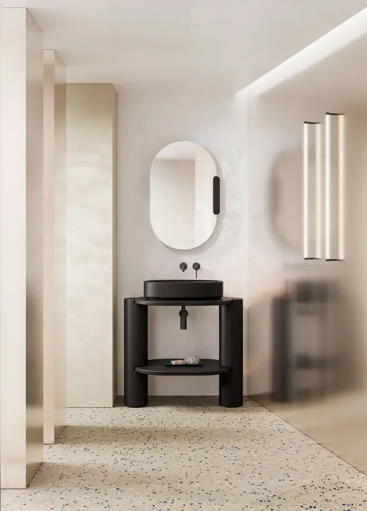 Idilla is a ceramic washbasin stand.IDILLA is a collection that celebrates craftsmanship and the excellence of Made in Italy, blending volumes and shapes in a dialogue between past and present. It reinterprets ceramic tradition through a contemporary lens, using thick edges and refined details to offer a fresh perspective on the material.This collection doesn’t just explore the past—it renews it, rediscovering the heritage of ceramics with a modern vision. The result is a line that embodies a cycle of continuous innovation and rebirth, with an aesthetic language that transcends time and trends.