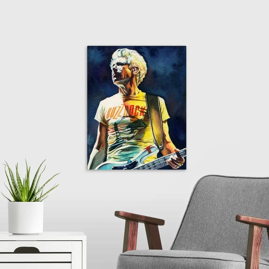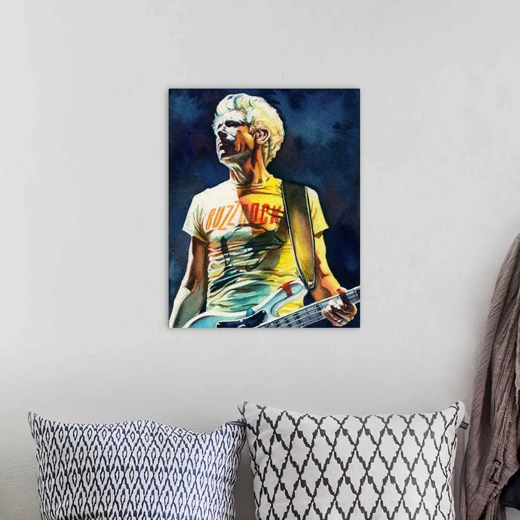 Illustration for atu2.com of Adam Clayton from U2's Innocence and Experience tour in watercolor.