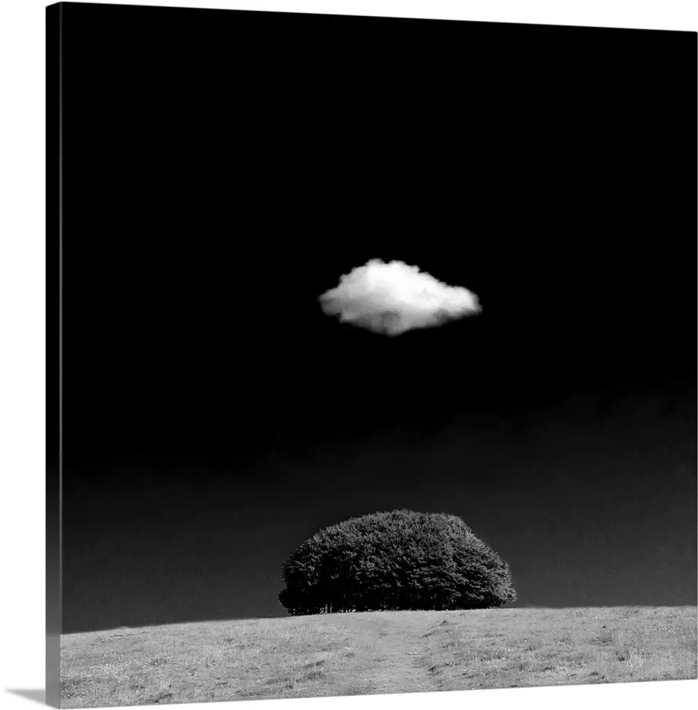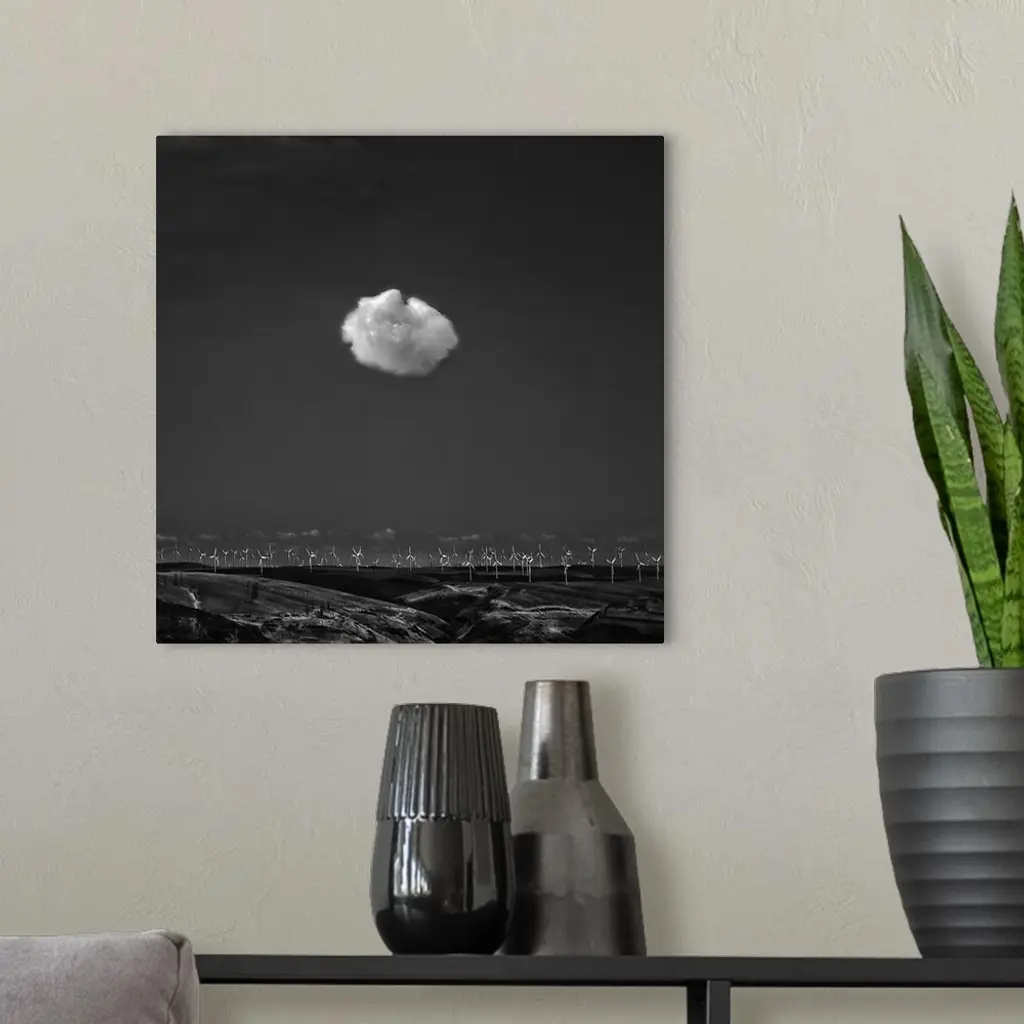 A lonely cloud hangs in the sky above a landscape of wind turbines, Michigan.