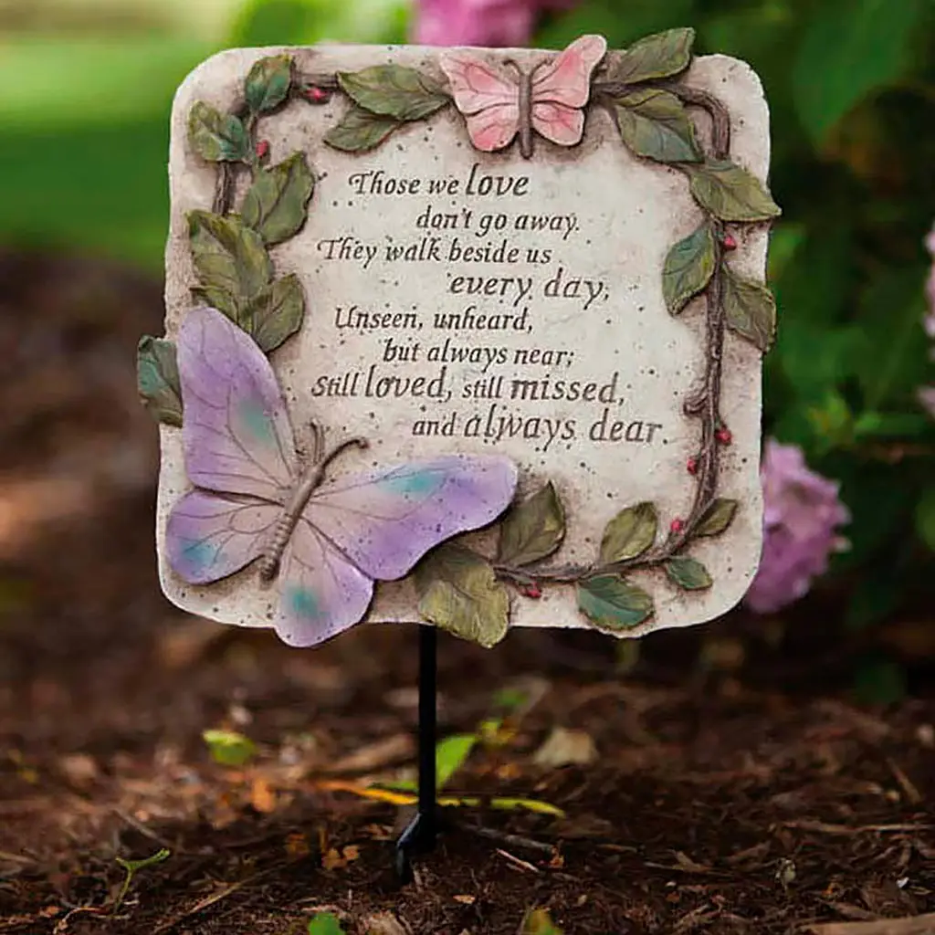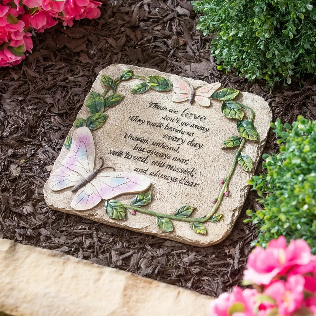 Honor your loved ones with our If Tears Can Build a Stairway Garden Stone. Place this beautifully crafted foliage-adorned stone in your garden in memory of a loved one. When words do not seem like enough, this stone serves as a touching tribute to honor and commemorate those who have passed. The inscription reads, "If tears could build a stairway and memories a lane, I'd walk right up to heaven and bring your home again." Put the stone alongside a walkway, under your favorite tree, near a flower bed, or on a porch or patio. It can also be easily displayed indoors as well. Made out of polystone resin, it has been treated with a special finish for protection against the sun and weather.