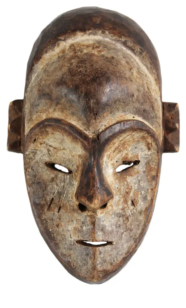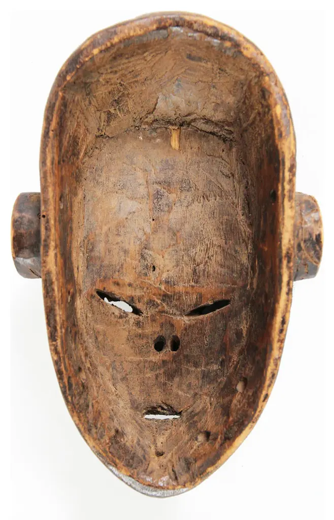 Traditional Igbo mask from Nigeria. painted in chalk white, the color of the spirit used in various ceremonies in a highly competitive social system. This is a great piece on the wall or display shelf with other masks. This item is non-returnable - all sales are final.