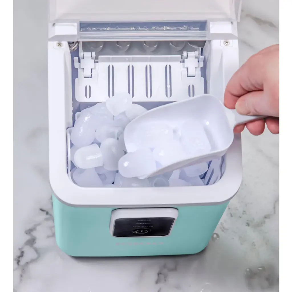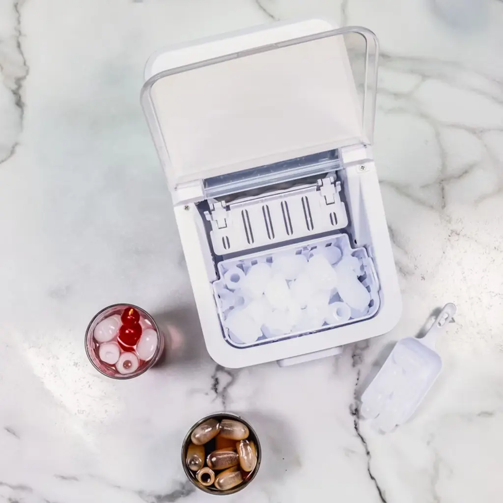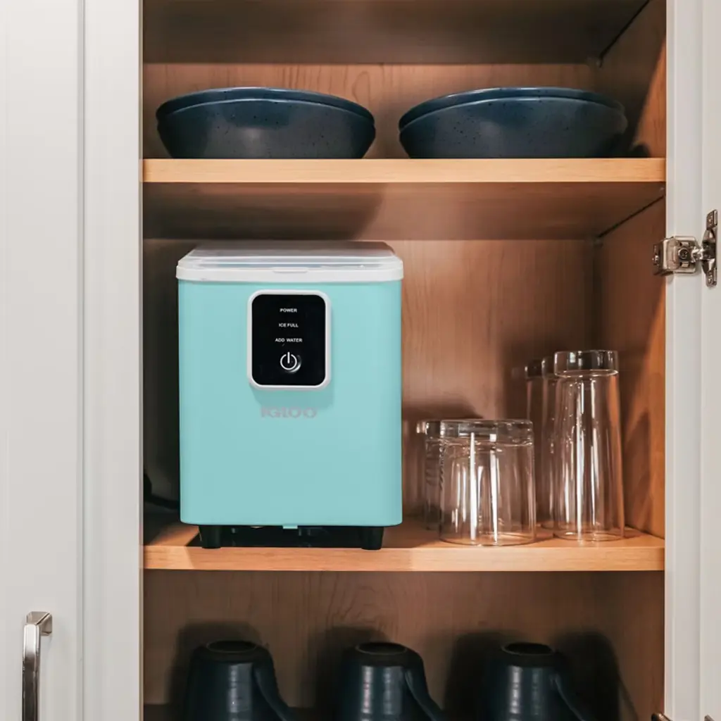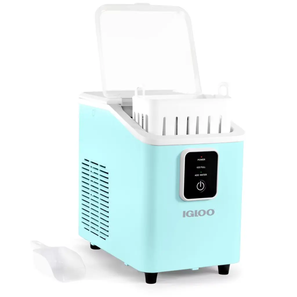 Meet the Igloo Self-Cleaning Countertop Ice Maker, your stylish and portable solution for keeping beverages perfectly chilled! In 7 minutes, you'll have your first batch of ice ready, and in a full day you can make up to 26 lbs. of ice. With a design that's sleek yet compact, you will save a ton of extra counterspace while still producing plenty of ice for keeping drinks cool. Operation is simple with a single-button control panel with LED indicator lights that signal when ice is full or water is needed. The included 1-pound ice basket and ice scoop ensures easy ice serving. The automatic five-cycle self-cleaning function makes clean up easy and allows clean ice to be made every time. Perfect for pool parties, home bars, dorm rooms, offices and more! Cold Drinks. Warm Smiles.