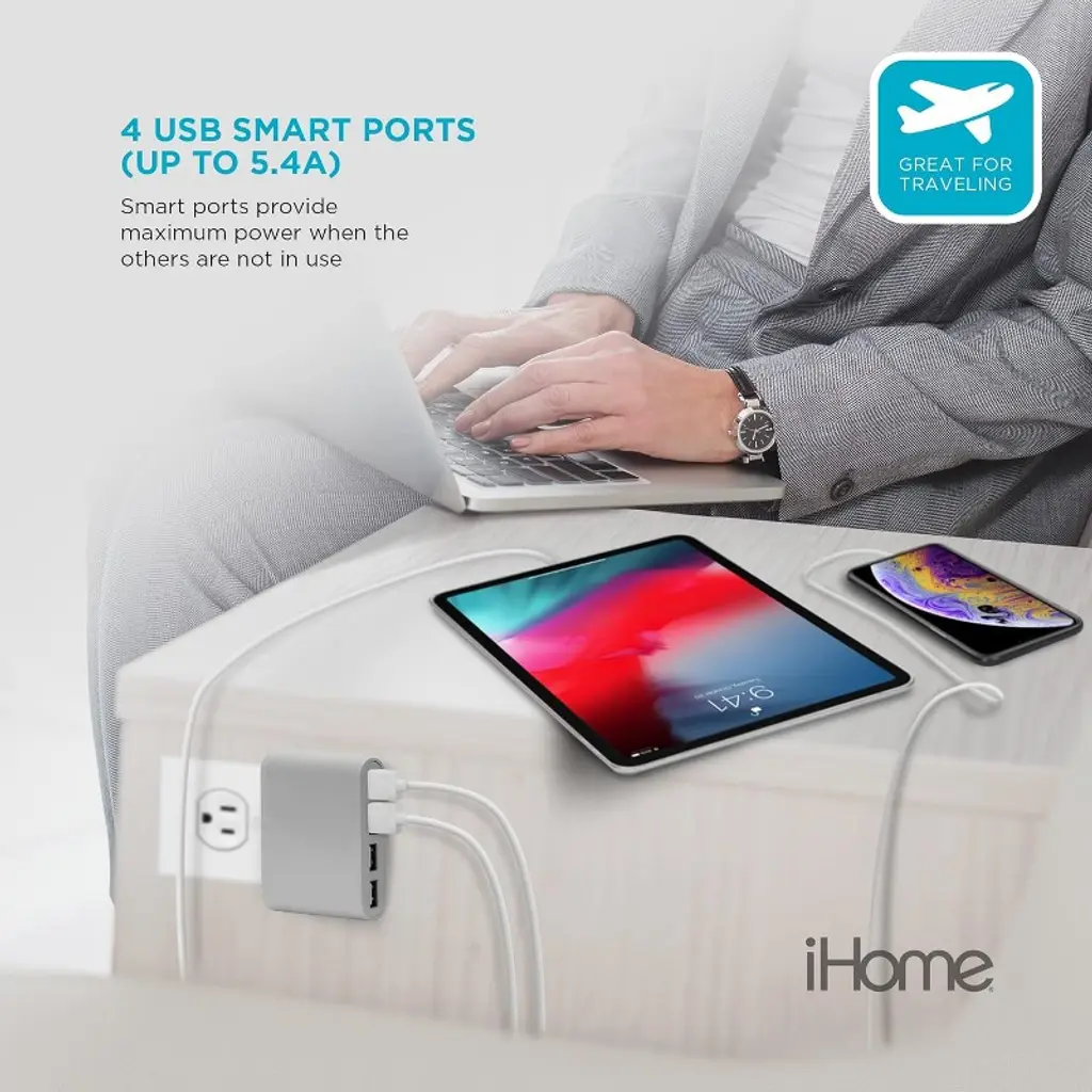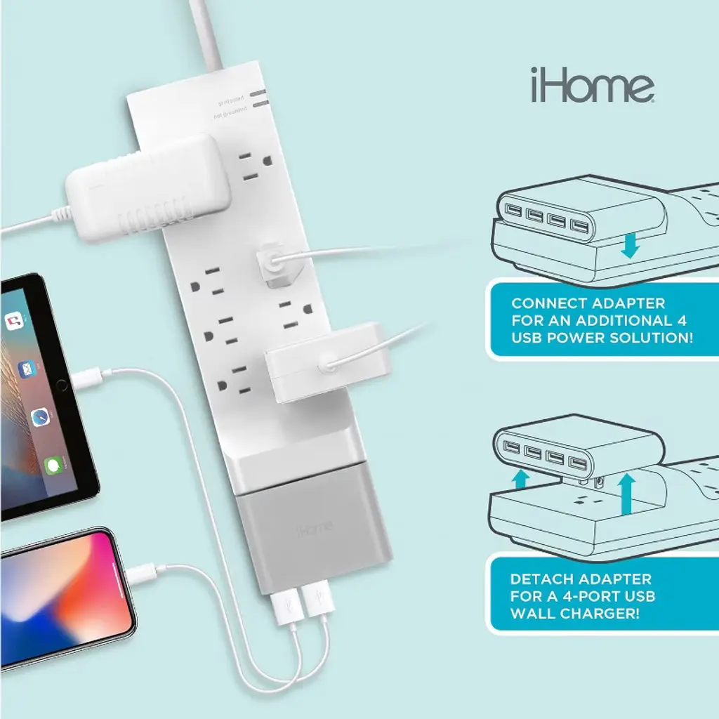 Ihome Power Strip Surge Protector & Slim Usb Wall Charger Bundle, 4 Port Ac, 6Ft Extension Cord