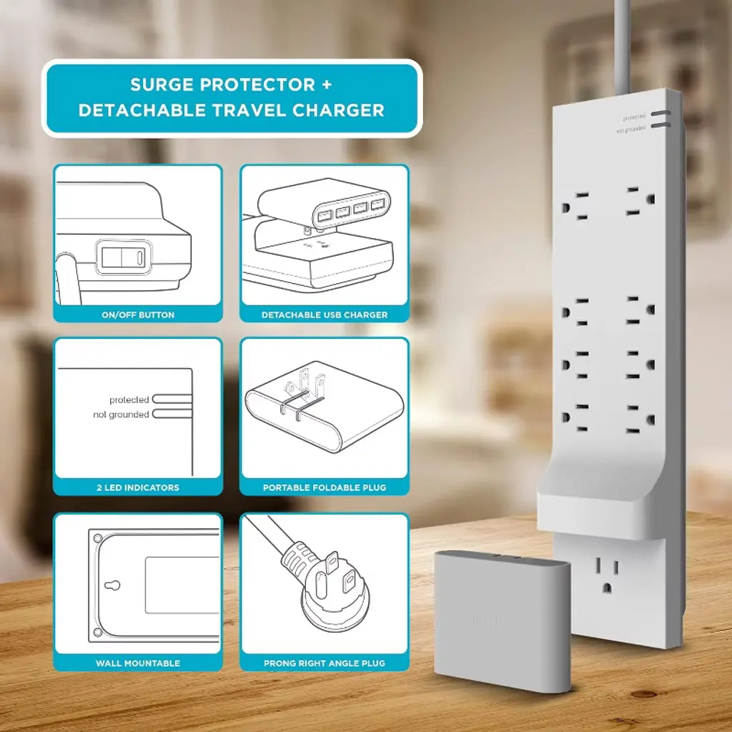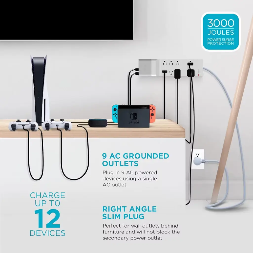 Introducing the iHome Power Rover Power Strip & Slim USB Wall Charger Bundle, the perfect addition to your home office or bedroom accessories. This power bundle includes a 6ft extension cord multi plug outlet extender and a detachable multiport USB charger offering you 9 AC outlet power strip surge protection for all of your electronic devices. The Power Rover features a 9 AC outlet splitter that is perfect for bulky plugs, making it a must-have for anyone looking for a multiple plug outlet. It's widely spaced outlets ensure that you'll never have to struggle with unplugging one device to make room for another. And with 3,000 joules of surge protection, you can rest assured that your devices will be safe from high voltage spikes. In addition to the surge protector power strip, this bundle also includes a removable 4 port USB power adapter, which allows you to charge up to 4 devices at the same time. The phone wall charger block is a USB adapter plug that converts a single AC outlet into a multiple USB charger, making it the perfect solution for those who need to charge multiple devices. The iHome Power Rover also comes with a flat USB wall plug that is not bulky like other USB blocks. Its slim design allows you to easily access hard to reach outlets, making it the perfect USB charger for your home or office. And with a 6ft extension cord, you can easily plug in your devices from a distance. Overall, the iHome Power Rover Power Strip & Slim USB Wall Charger Bundle is a must-have for anyone looking for a convenient and safe way to power their electronic devices. Its combination of a multi plug outlet extender, surge protector power strip, and detachable multiport USB charger make it the perfect all-in-one solution for your charging needs. Introducing the iHome Power Rover Power Strip & Slim USB Wall Charger Bundle, the perfect addition to your home office or bedroom accessories. This power bundle includes a 6ft extension cord multi plug outlet extender and a detachable multiport USB charger, offering you 9 AC outlet power strip surge protection for all of your electronic devices. The Power Rover features a 9 AC outlet splitter that is perfect for bulky plugs, making it a must-have for anyone looking for a multiple plug outlet. Its widely spaced outlets ensure that you'll never have to struggle with unplugging one device to make room for another. And with 3,000 joules of surge protection, you can rest assured that your devices will be safe from high voltage spikes. In addition to the surge protector power strip, this bundle also includes a removable 4 port USB power adapter, which allows you to charge up to 4 devices at the same time. The phone wall charger block is a USB adapter plug that converts a single AC outlet into a multiple USB charger, making it the perfect solution for those who need to charge multiple devices. The iHome Power Rover also comes with a flat USB wall plug that is not bulky like other USB blocks. Its slim design allows you to easily access hard to reach outlets, making it the perfect USB charger for your home or office. And with a 6ft extension cord, you can easily plug in your devices from a distance. Overall, the iHome Power Rover Power Strip & Slim USB Wall Charger Bundle is a must-have for anyone looking for a convenient and safe way to power their electronic devices. Its combination of a multi plug outlet extender, surge protector power strip, and detachable multiport USB charger make it the perfect all-in-one solution for your charging needs.