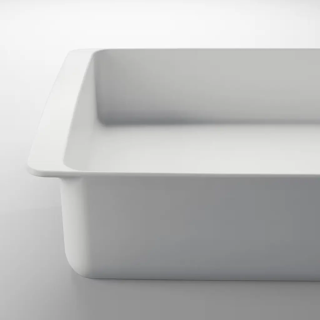 IKEA 365+ Baking dish - white 15x10 ¼ ". Made of feldspar porcelain, which makes the oven dish impact resistant and durable. The large handles make it easy and safe for you to hold and lift the oven dish. Wash this product before using it for the first time.