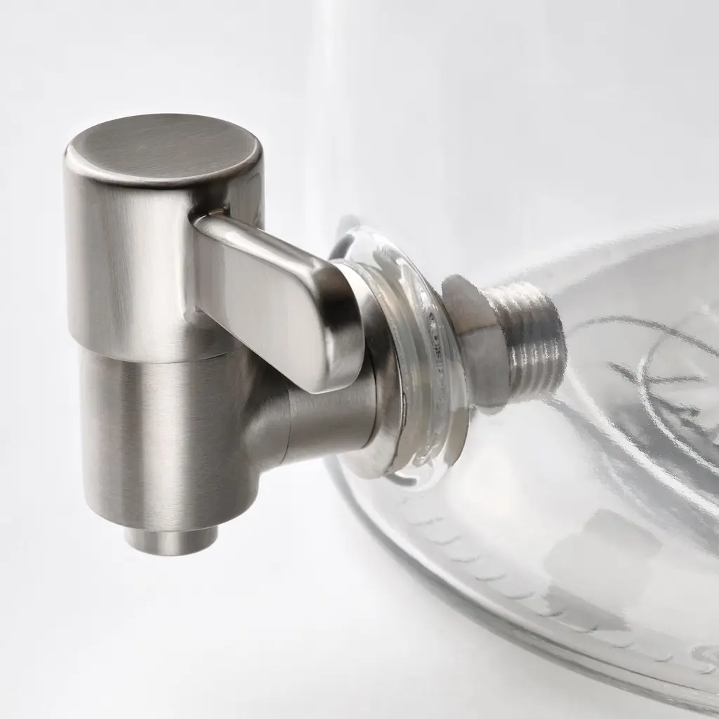 IKEA 365+ Beverage dispenser - bamboo/clear glass 4 qt. Convenient height that allows the jar with tap to fit in most fridges. You can easily add things like fruit or herbs thanks to the wide opening on top. Only for drinks with a max. temperature of 122°F. The bamboo stand is sold separately.