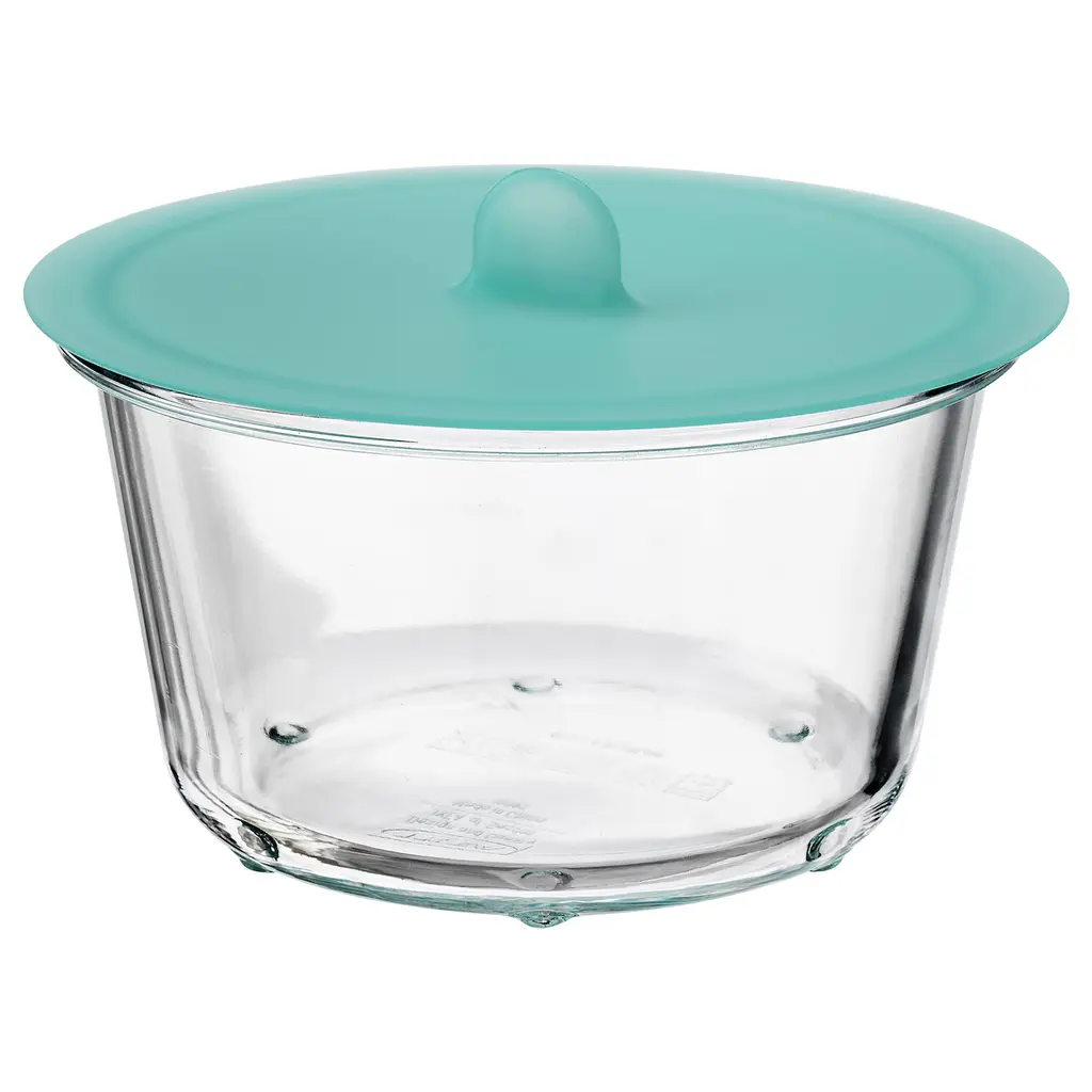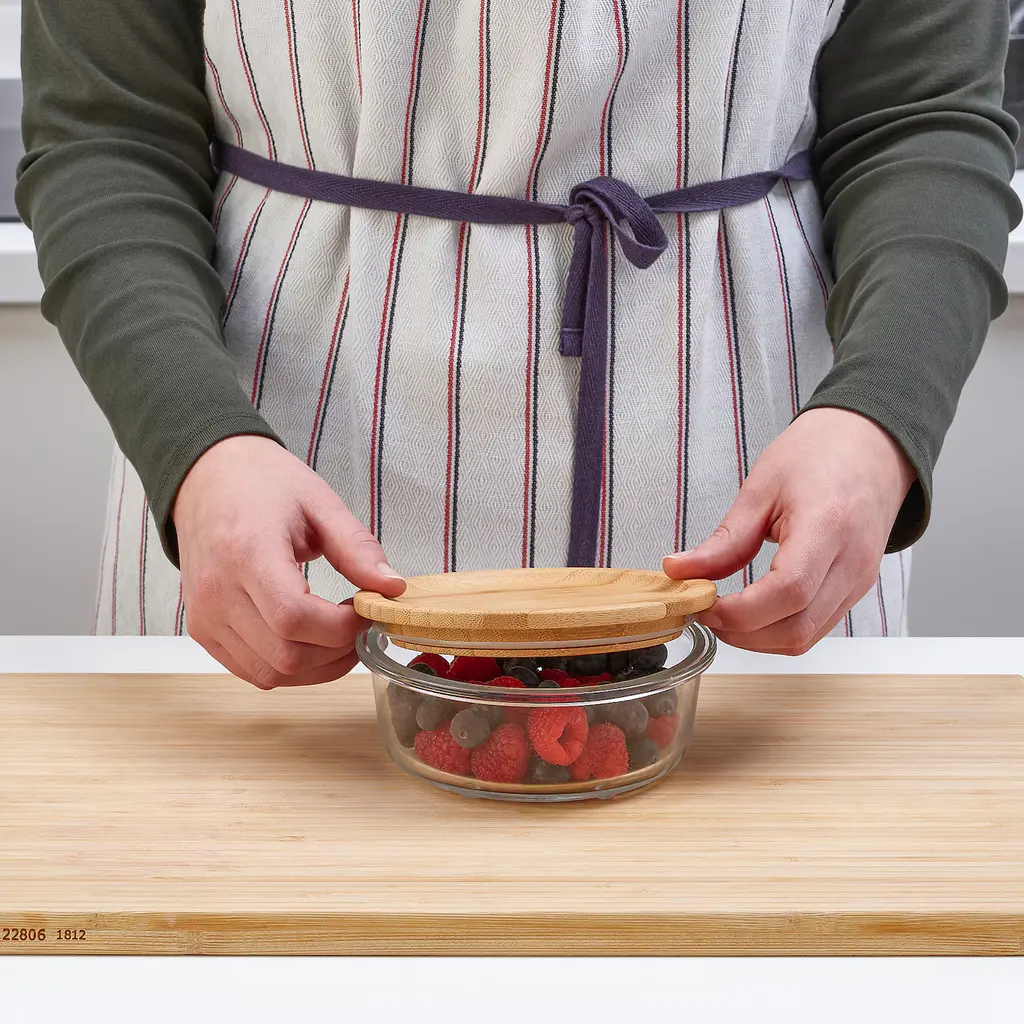 IKEA 365+ Food container with lid - round glass/bamboo 14 oz. Tight-fitting lid which keeps food fresh and preserves aromas and flavors. The natural bamboo creates a warm and vibrant look. The food container is made of oven-safe glass and can be used as an oven/serving dish.