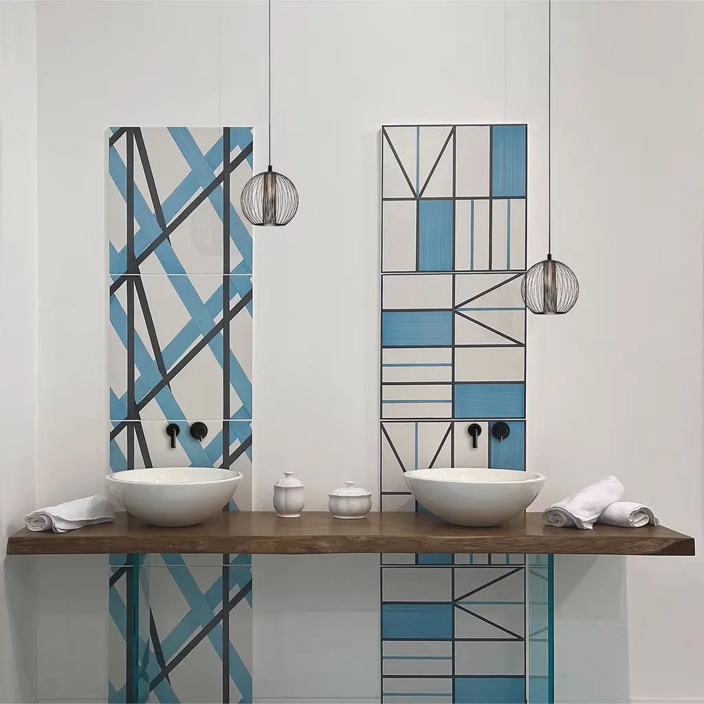 Il Saraceno Geometric Motif Light Blue And Dark Gray Ceramic Tile