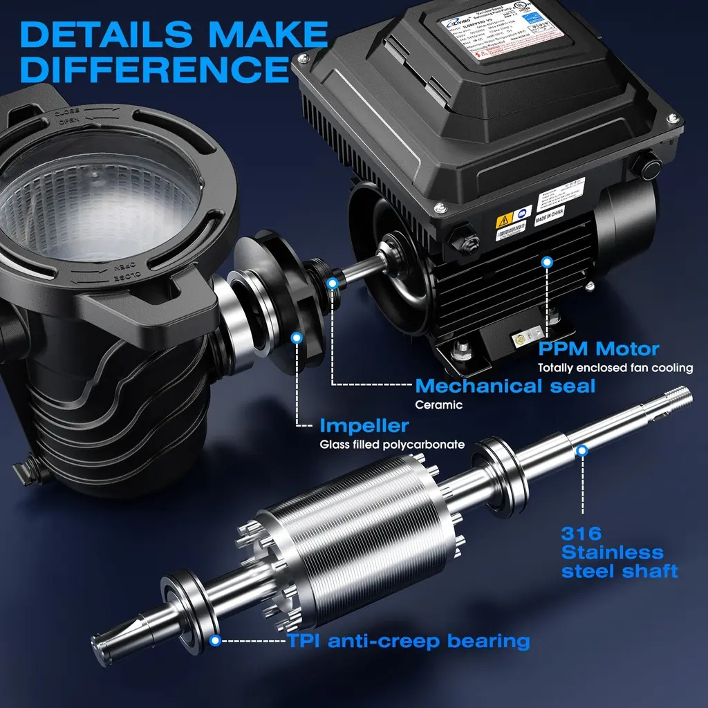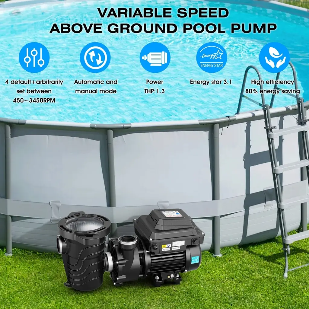 Iliving Ilg8pp130-Vs Variable Speed Above Ground Swimming Pool Pump, 1.3hp - Black