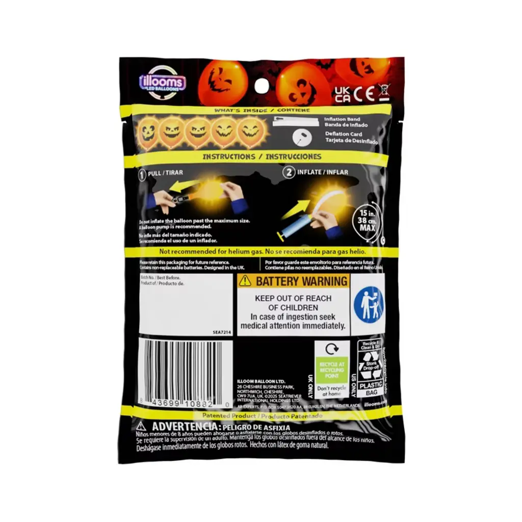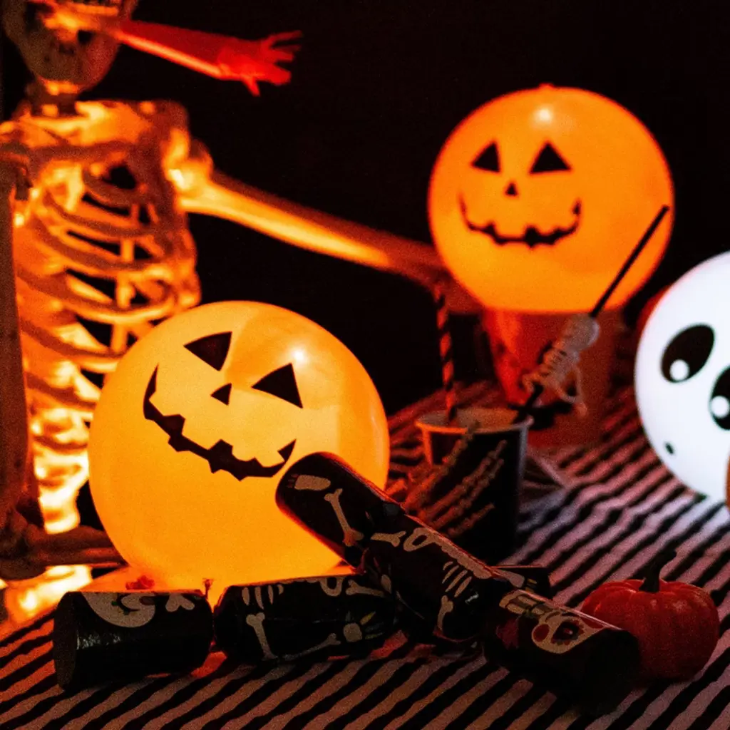 Make your Halloween glow with friendly pumpkin balloons that light up the night. These LED latex balloons feature jack-o’-lantern faces and warm amber light to give your space a festive, safe Halloween feel. Perfect for decorating tables, doorways, or pumpkin-free zones, they’re easy to activate and stay lit for hours.