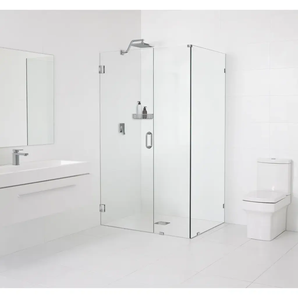 This frameless shower door can instantly make your bathroom look bigger and brighter, adding a fresh and modern feel yet having the versatility to complement any bathroom style. The added advantage and beauty of this glass shower door over our competitors is the height. This is the standard height for all our panels, adding unmatched style and extra value to your frameless shower door purchase. This glass exceeds the American and International Standard codes. All shower doors are coated with the revolutionary invisible treatment: Enduroshield. This treatment repels water, soap scum, and grime, helping to reduce cleaning time by up to 90%. This is a world forerunner in glass coatings used by all major US glass manufacturers. Proud to present you quality products that will endure the test of time and we know you will love them.
