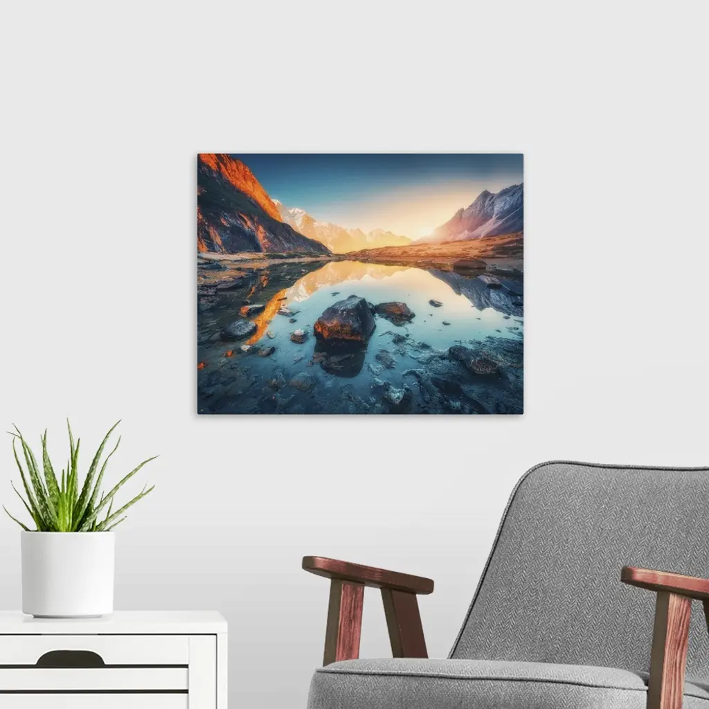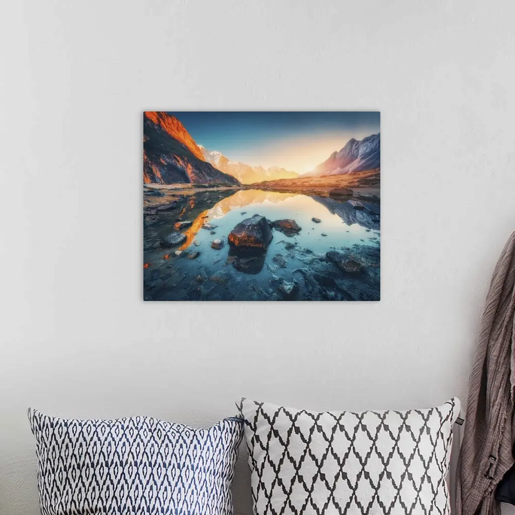 Illuminated Peaks Of Himalayan Mountains At Sunrise, Nepal