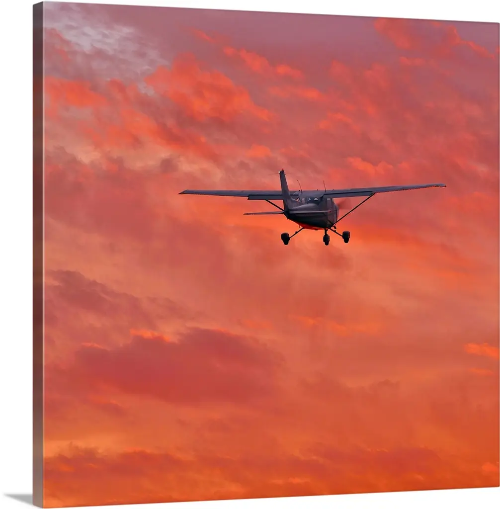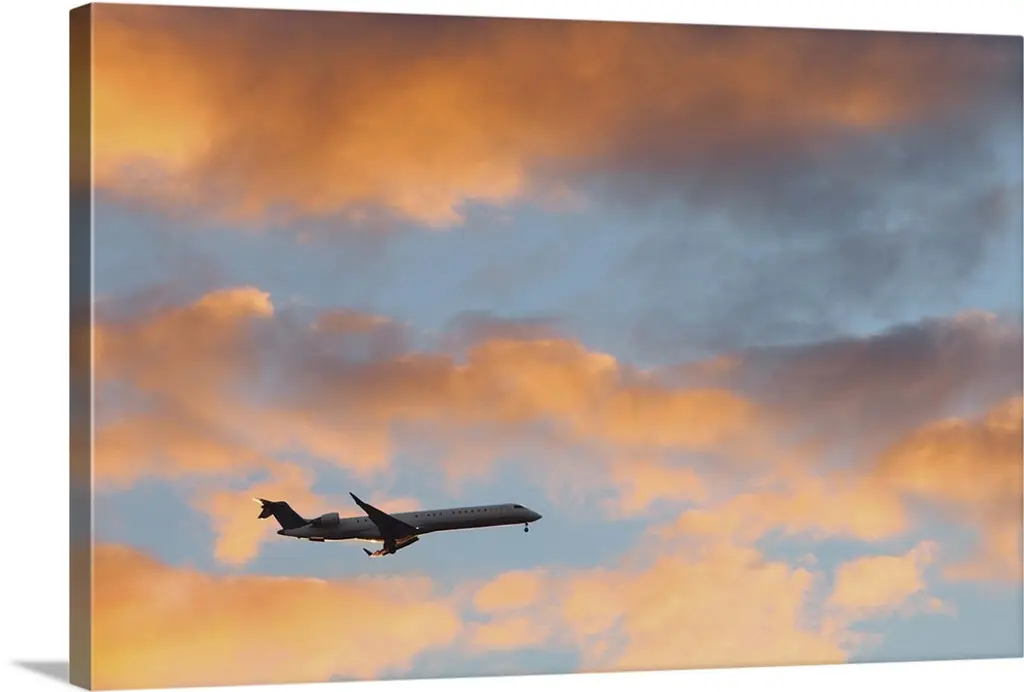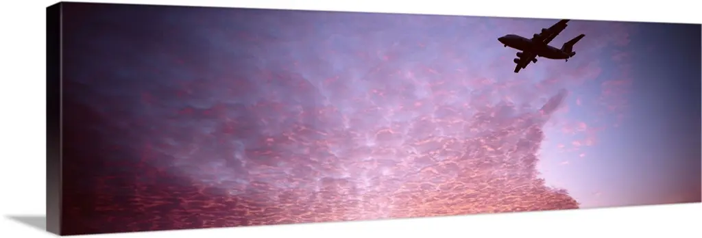 Image Of An Airplane Flying Over Sunset Sky.
