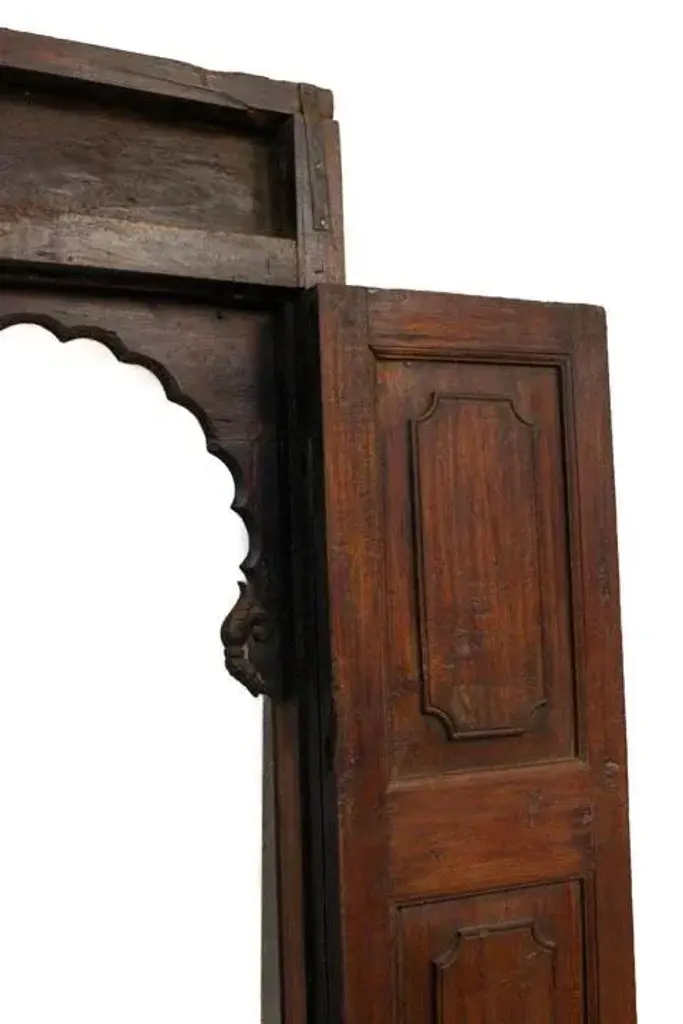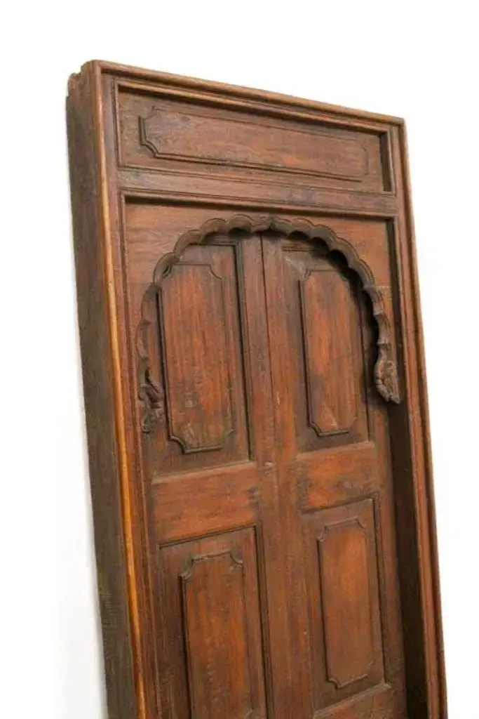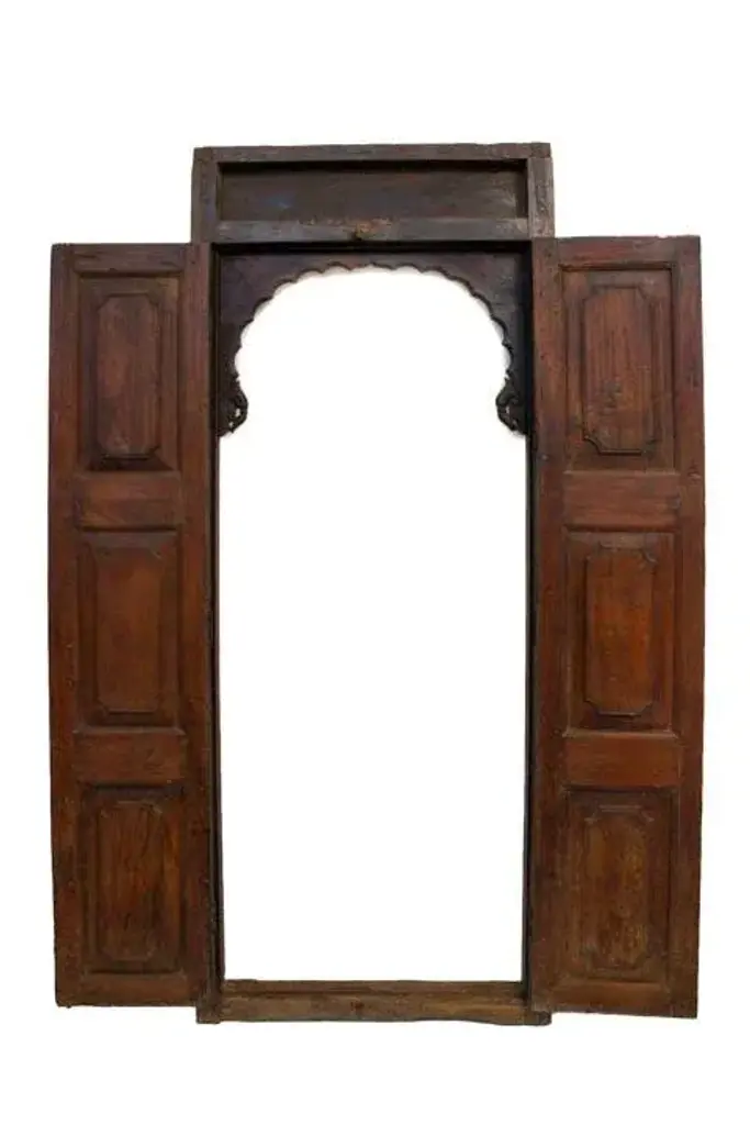 Our window panel is extra large, make a statement with this piece! Features include solid wood with a scalloped decorative trim border and 7 raised panels. two panels Mount on a silder or lean against any wall to create a focal point that adds depth and character to any room. Center seam opens two panels, Overall dimensions 31 wide, 76 high, 4.5 deep. Open dimensions at Narrowest points 63 to peak of arch, 21 wide within the arch , 26.5 wide below the arch.