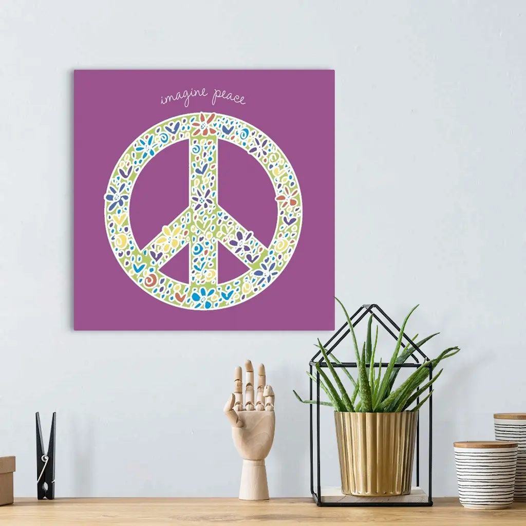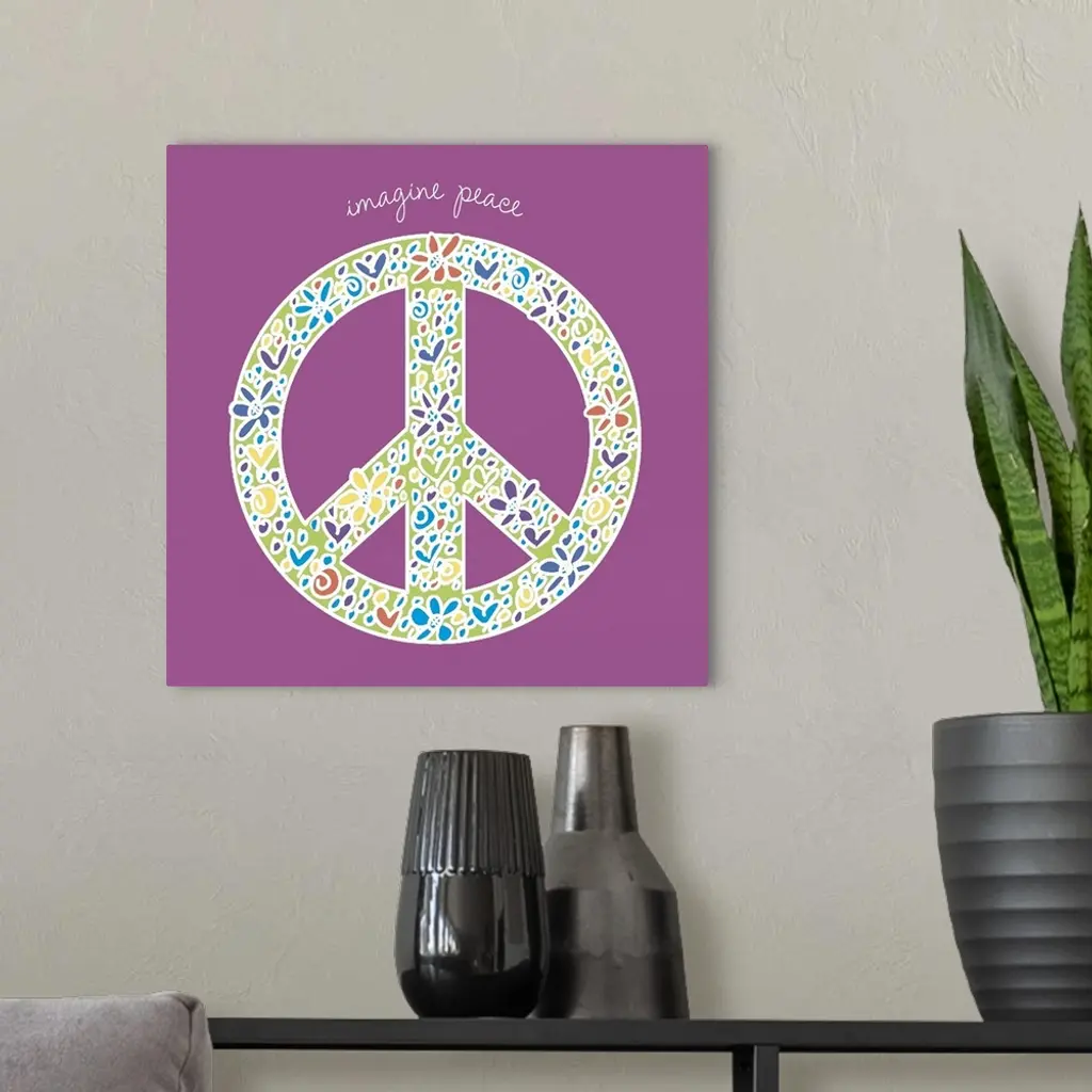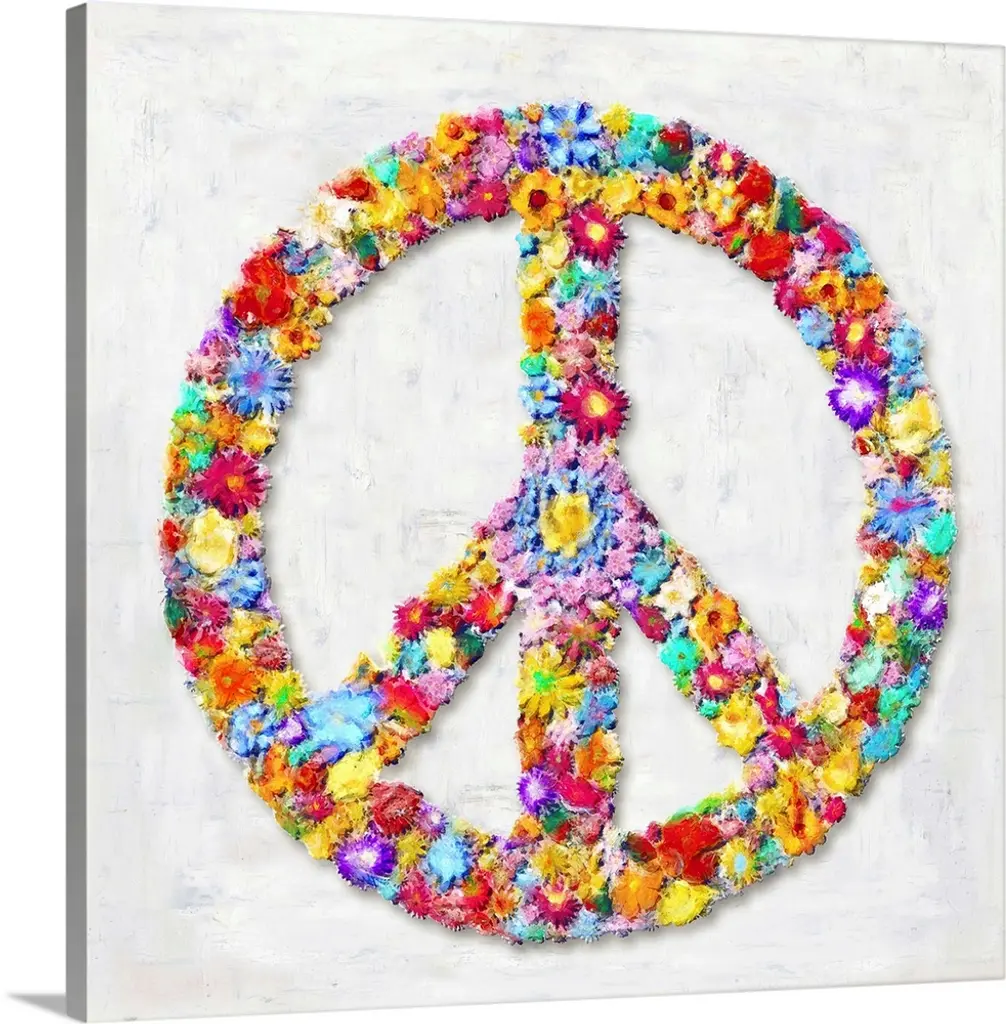 Decorative image of a peace sign with flowers and the phrase "Give Peace A Chance."