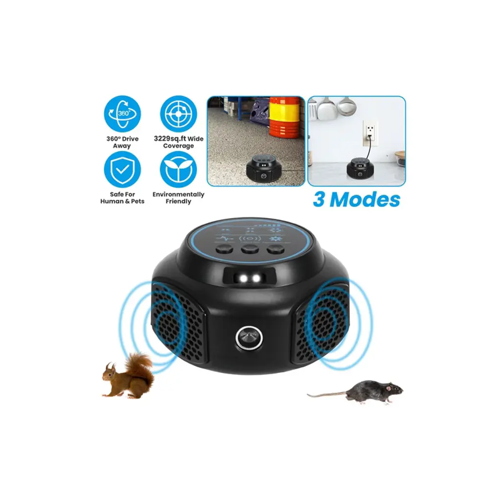 Imountek "360° Ultrasonic Rodent Repeller With 3 Modes & Led Strobe Lights For Mice, Rats, Squirrels – Perfect For Home & Warehouse" Black