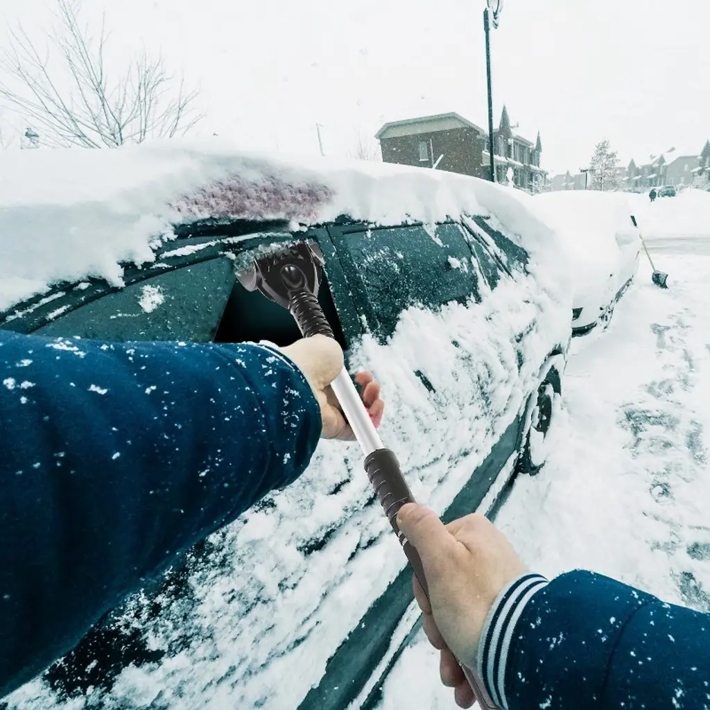 The iMounTEK 3-in-1 Car Snow Brush & Ice Scraper is a versatile and durable tool designed to make winter car maintenance easier. Crafted with high-quality PVC bristles, the brush is tough enough to handle snow and ice but gentle on your car's surface, ensuring no scratches. The lightweight design allows for one-handed use, making it easy to operate without strain. Equipped with an extendable rod that stretches from 21.65in to 27.56in, this tool provides the flexibility to reach every corner of your car, from the windshield to the roof, without moving around. The 360° pivoting head can be adjusted with the press of a button, allowing you to switch between horizontal and vertical directions to tackle every spot effectively. The comfortable foam handle ensures a firm, non-slip grip, even in freezing temperatures, so you can use it for extended periods without discomfort. When not in use, the brush, extendable rod, and scraper detach for easy storage, making it space-efficient and convenient. Whether you’re dealing with light frost or heavy snow, the iMounTEK Car Snow Brush & Ice Scraper is your reliable solution for winter weather conditions. **What's Included:** - 1 x Car Snow Brush & Ice Scraper - 1 x User Manual