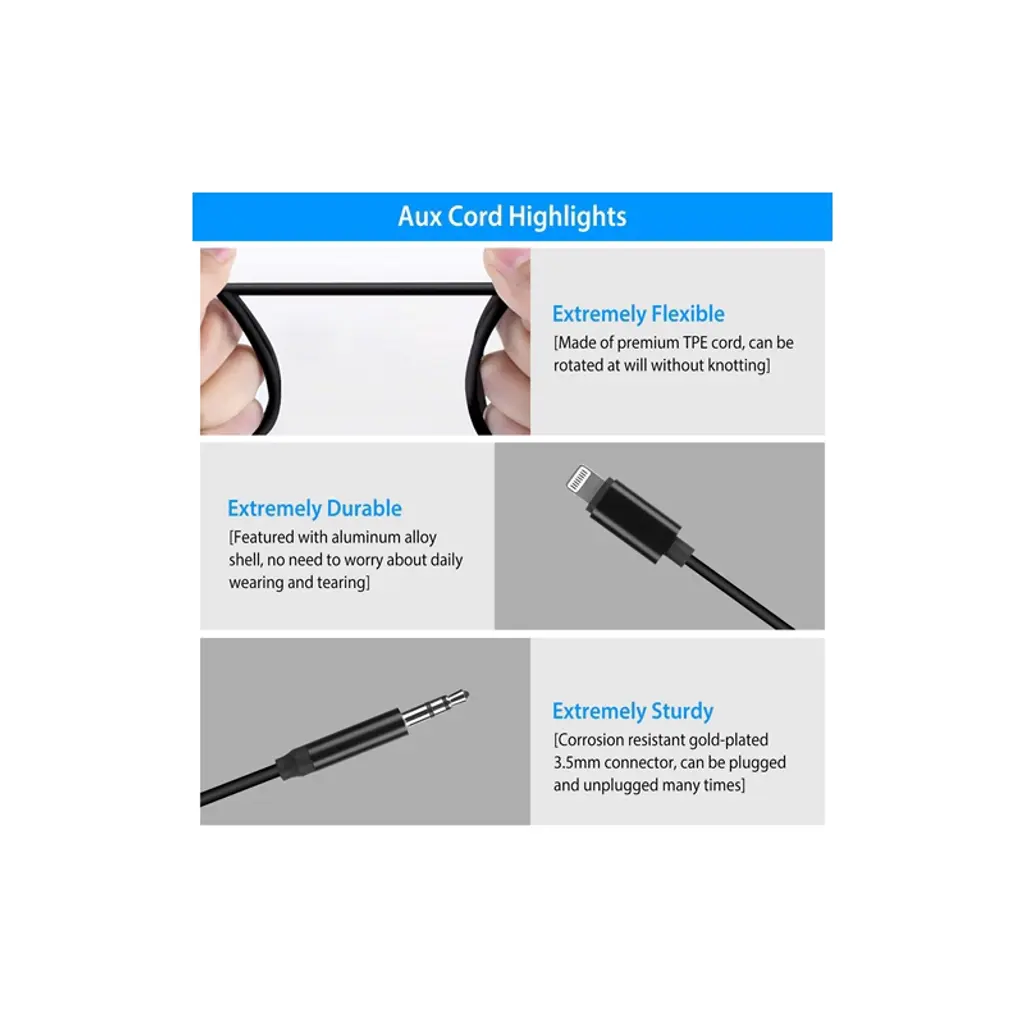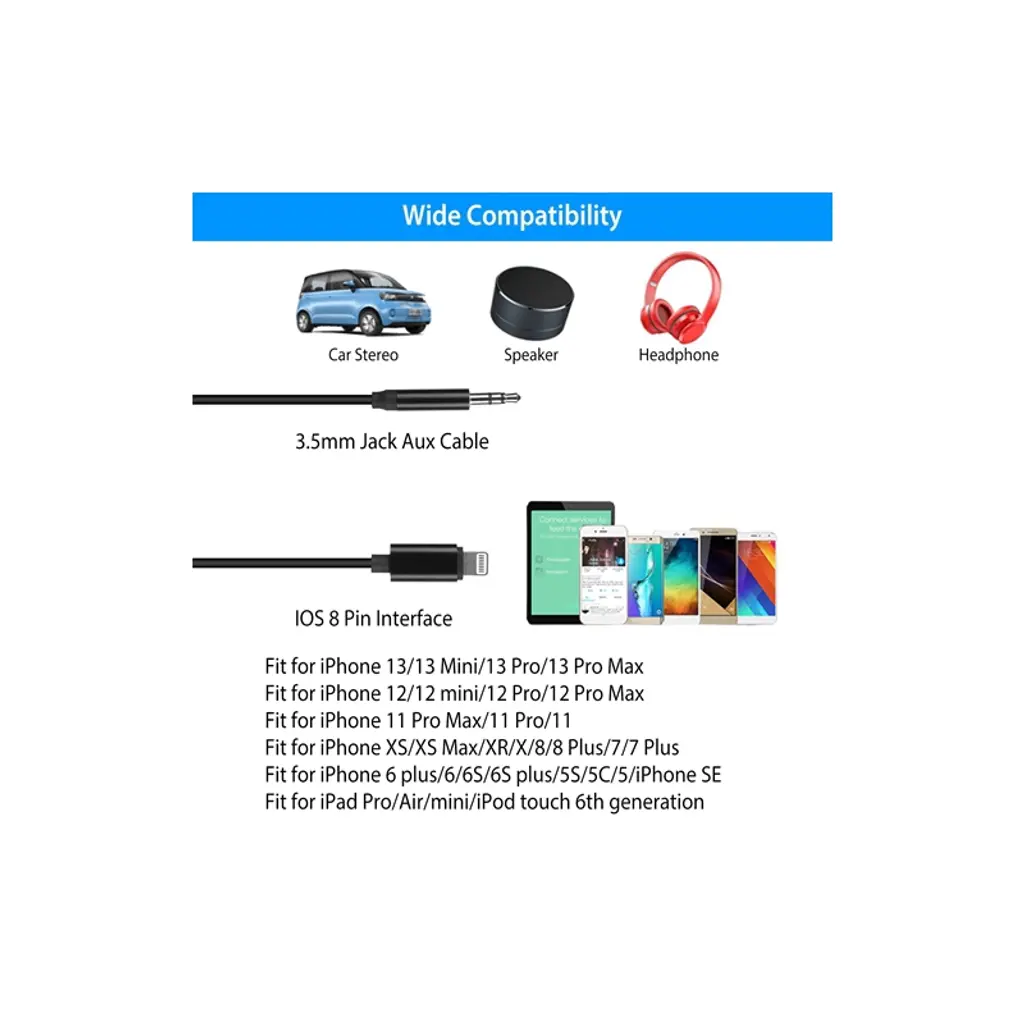 Enhance your audio experience with the iMounTEK iOS 8 Pin to 3.5mm Aux Audio Adapter. Designed for seamless connection between your Apple device and any 3.5mm-compatible audio system, this adapter ensures premium sound quality with minimal signal loss. Key Features: Premium Sound Quality: Featuring a corrosion-resistant, gold-plated 3.5mm connector and a durable aluminum alloy port, this adapter guarantees clear and stable audio with reduced noise interference for a superior listening experience. Wide Compatibility: Perfectly compatible with a wide range of Apple devices, including iPhone 13, 12, 11, XS, XR, X, 8, 7, 6 Plus, iPad Pro, iPad Air, iPad Mini, and iPod Touch 6th generation. Connect it to car stereos, home audio systems, portable speakers, headphones, MP3 players, or any device with a 3.5mm aux input. Easy to Use: No need for additional drivers or adapters. Simply plug the adapter in, and you’re ready to enjoy high-quality music. The ultra-thin connector is designed to fit through most phone cases, so you don’t have to remove your case for convenience. Fast Decoding & Clear Audio: Built with an advanced Jerry chip, this adapter ensures fast decoding of audio signals, offering quick transmission and delivering clear, high-fidelity sound. Portable & Compact: Lightweight and easy to carry, this foldable cable is perfect for travel and on-the-go use. Whether you're at home or on the move, it's the ideal companion for enjoying your favorite tunes. Specifications: Brand: iMounTEK Product Type: iOS 8 Pin to 3.5mm Aux Cord Adapter Color : White Materials: TPE + Aluminum Alloy Chip: Jerry Cable Length: 1m (39.3 inches) Item Dimensions: 1x0.6x105cm (0.39x0.24x41.34 inches) Item Weight: 12g (0.03lbs) Package Size: 11x11x2cm (4.33x4.33x0.78 inches) Package Weight: 17g (0.03lbs) Package Includes: 1x iOS 8 Pin to 3.5mm Aux Cord Audio Car Adapter