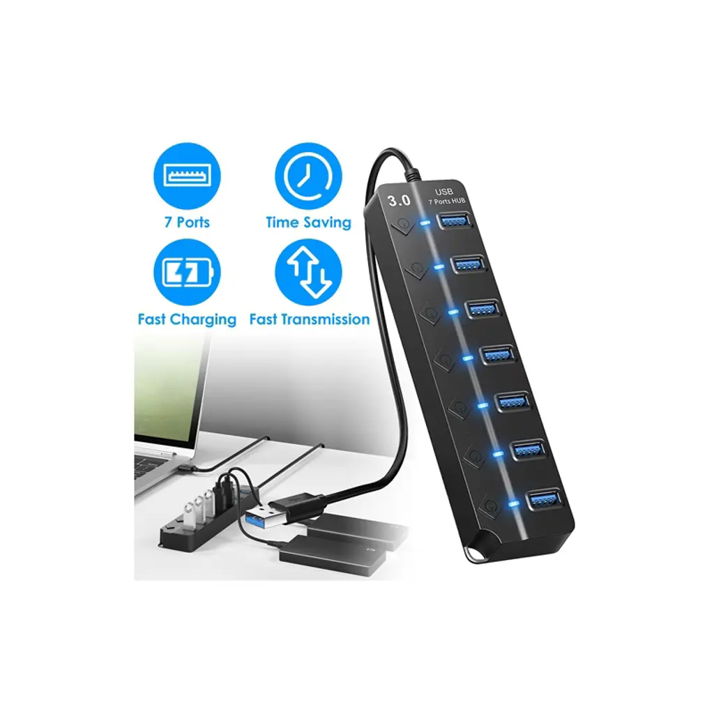 Imountek"usb 3.0 Hub Splitter 7 Ports, 5Gbps High-speed Data Transfer With Individual On/off Switches"black