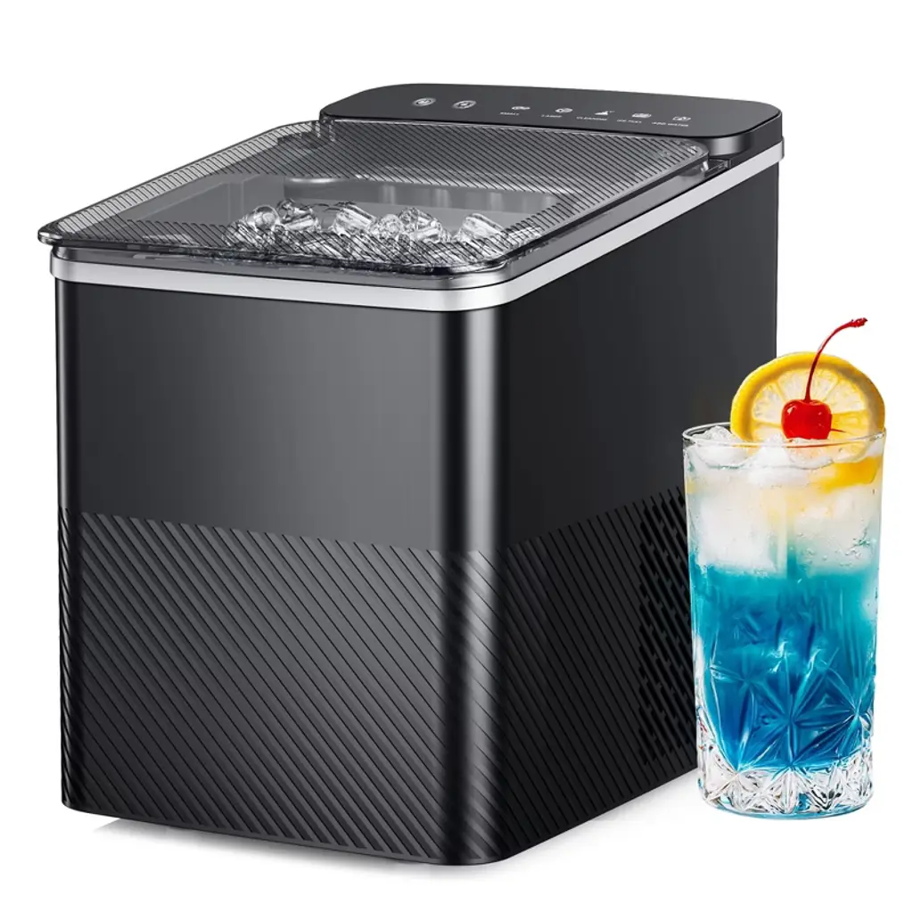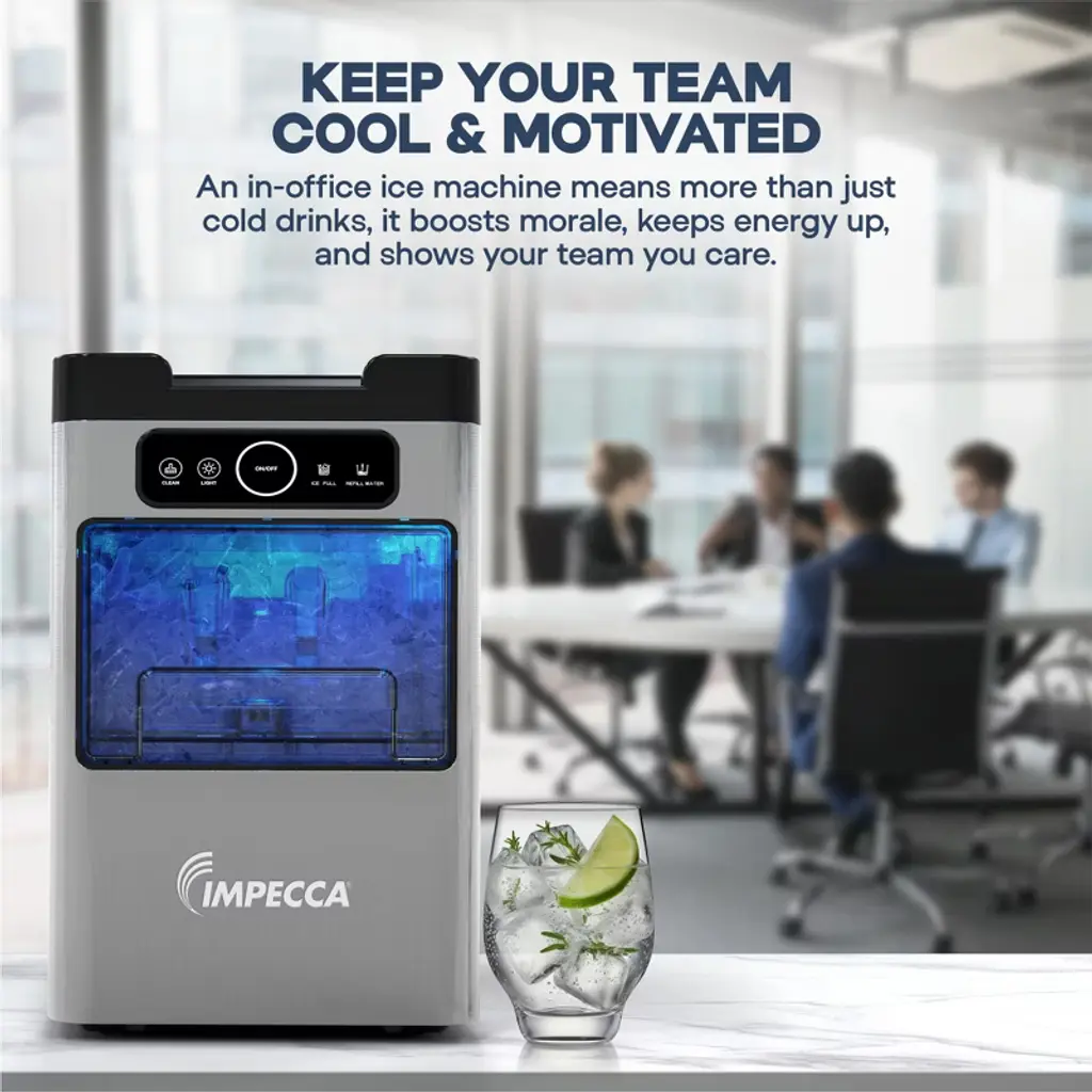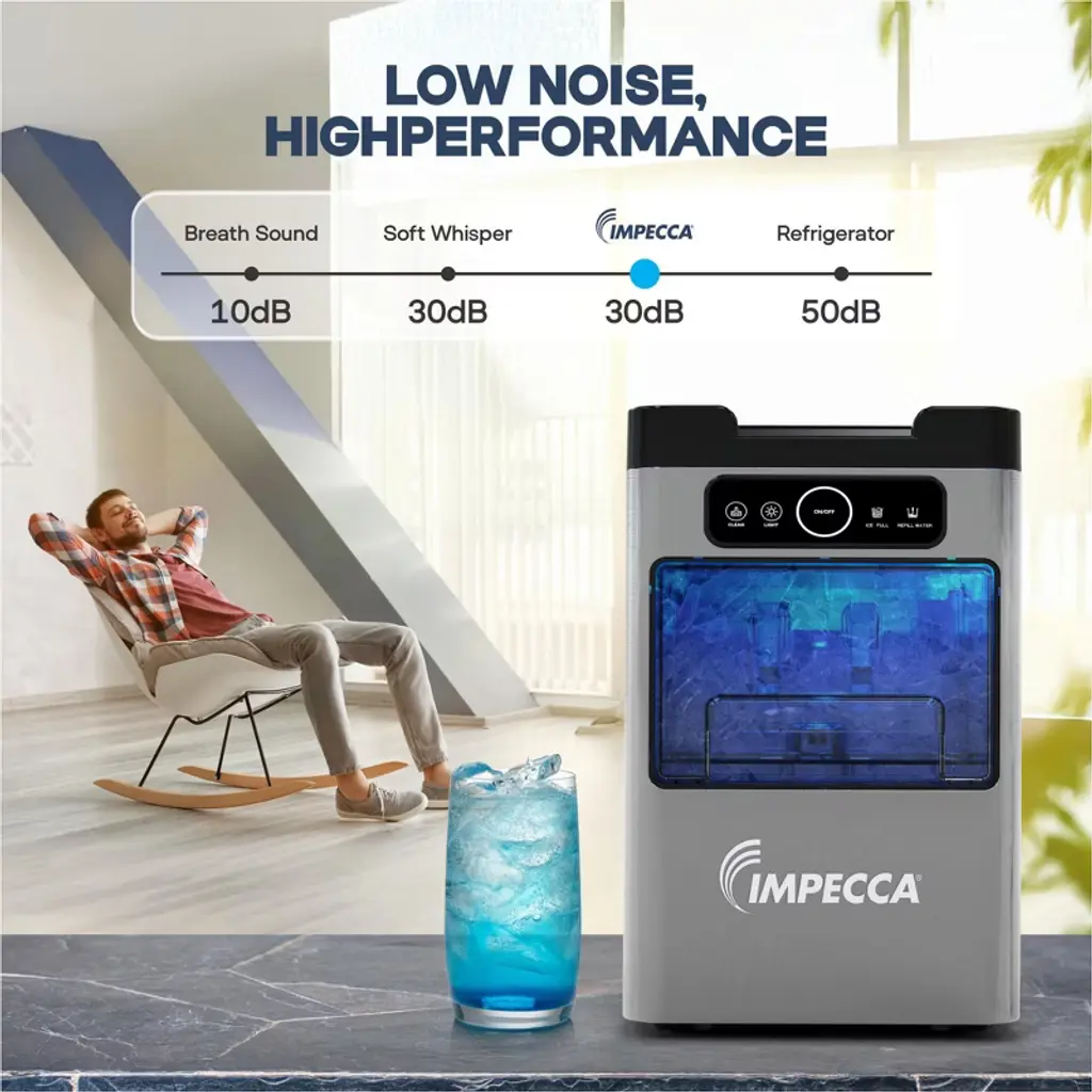 Enjoy soft, chewable, restaurant-quality nugget ice right at home with the IMPECCA IIM-3301ST Mini Soft Nugget Ice Maker. Compact in size but big on performance, this sleek ice maker produces up to 35 pounds of fresh nugget ice per day, with the first batch ready in as little as 5 minutes. Designed for convenience, the drawer-style access, transparent viewing window, and intuitive touch panel make ice-making effortless—no water line required. Simply plug it in, fill the reservoir, and let it work. The automatic self-cleaning function keeps your ice tasting fresh and your machine running smoothly. With a 2-pound ice basket and stylish matte finish, the IIM-3301ST looks as good as it performs—perfect for kitchens, home bars, RVs, and more.