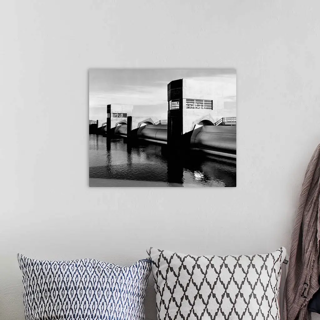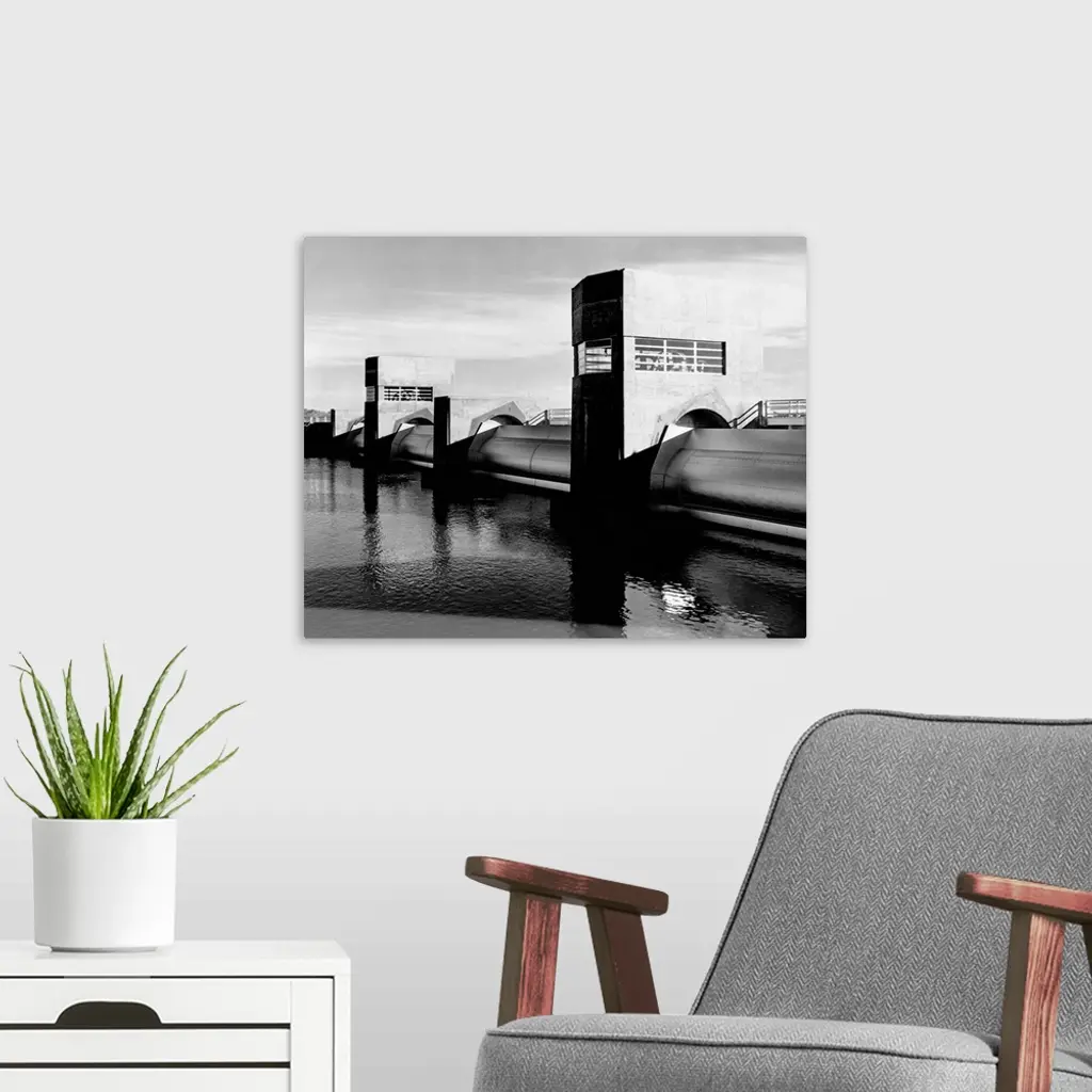A view of the large roller gates on the up stream side of Imperial Dam, California, February 1939.