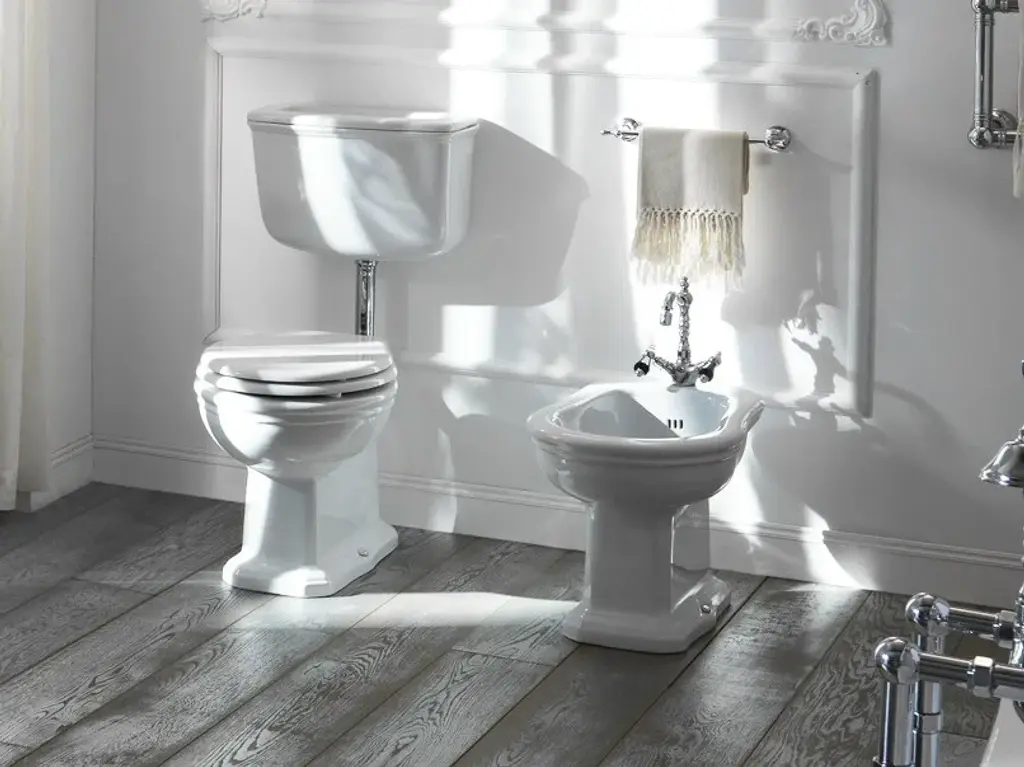 IMPERO is a Vitreous China floor standing bidet with one or three holes. Fixing kit included.Olympia Ceramica created “Impero Style”, a concept that responds to the request of timeless classic shapes, combined with modern values of functionality and elegance.The perfect harmony among ceramics, metals and wood allows to create different compositions made with different materials, that can be adapted to any demands, always keeping Class, Elegance and Luxury as main features. Details for a luxury and timeless Bathroom.