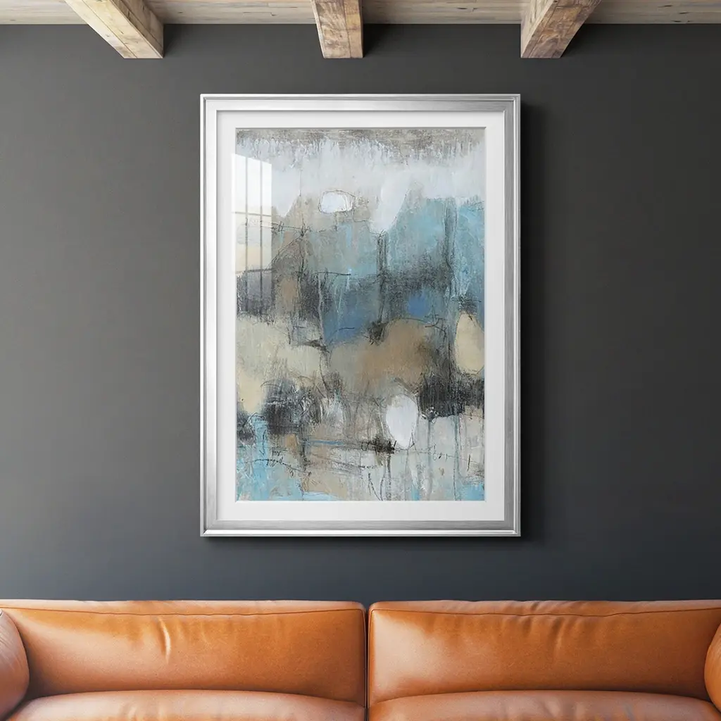 Gallery-wrapped canvas with hand-applied image brush gel finish.Set in a silver floater frame.