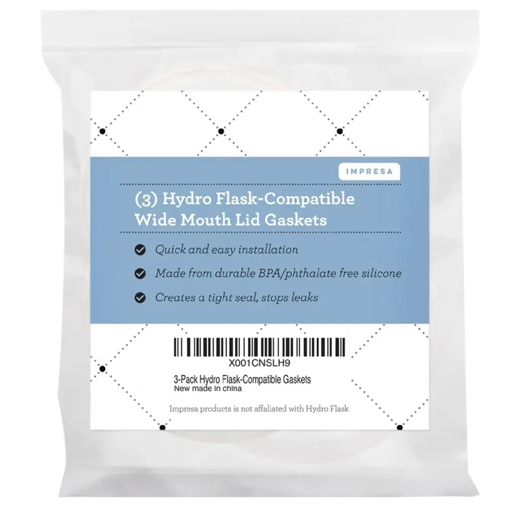 Perfect Replacements: Perfect replacement gaskets / rubber stoppers for your wide mouth Hydro Flask Lid /Hydroflask Lid. Made from high-quality, durable, food-safe silicone.BPA / Phthalate / Latex – Free. Replace Your Lost Or Loose Gasket: There are man yreasons to have spare gaskets on hand. Gaskets get lost periodically.Warped or worn out gaskets can cause leaks. Always have a spare on hand! Stop Using Damaged Or Leaky Gaskets: A damaged gasket (or no gasket, at all) means a poor seal, leading to a leaky bottle,defeating the point of having such a great bottle to begin with. Save Money: Replacement gaskets for these lids are hard to find - don't buy a new lid,just get a new set of gaskets and you'll never run out. Please note: This is an aftermarket replacement product (produced by Impresa)meeting or exceeding the quality of OEM rings (based on in-house testing).Soak your gasket in vinegar periodically to prevent unwanted build-up.